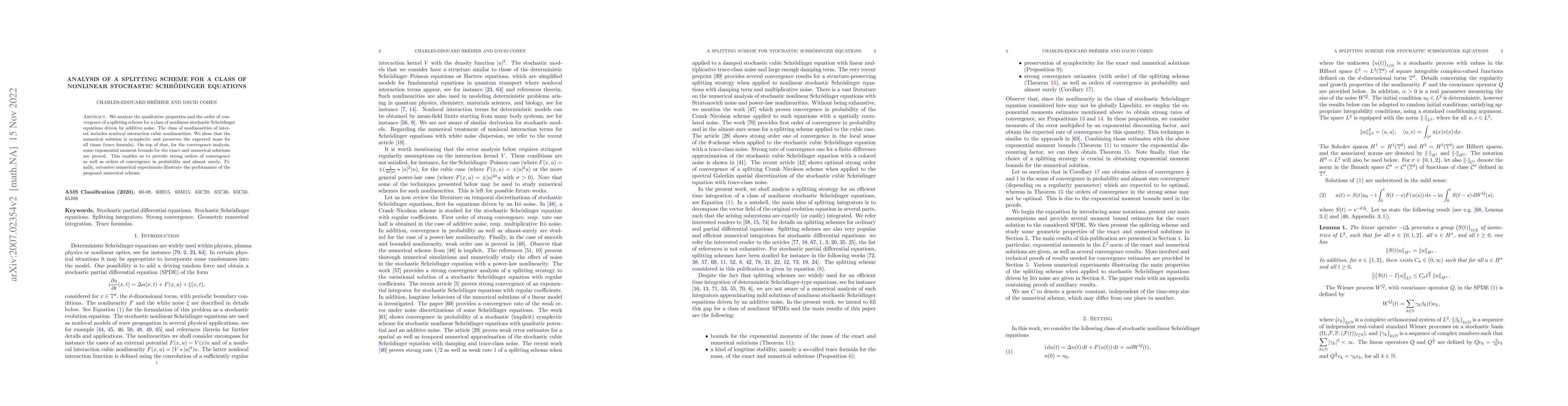 This paper analyzes a splitting scheme for nonlinear stochastic Schrödinger equations driven by additive Itô noise, proving its symplecticity and mass preservation. It establishes strong, probabilistic, and almost sure convergence orders, supported by exponential moment bounds and validated through numerical experiments.