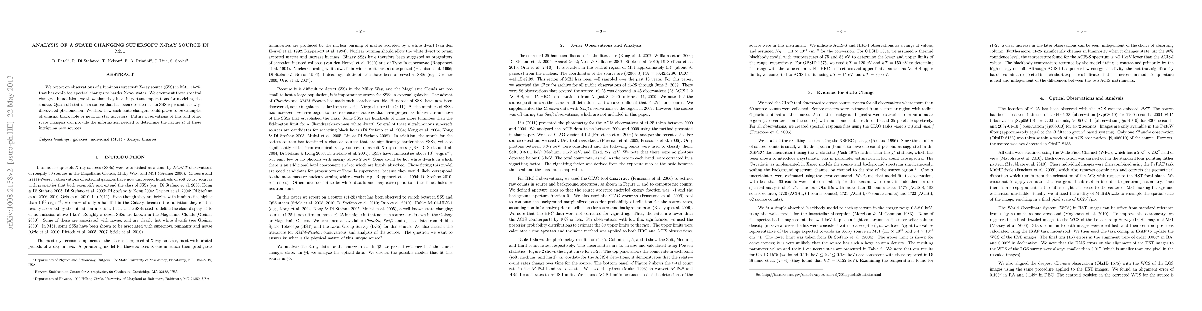 The paper reports observations of a supersoft X-ray source (SSS) in M31, r1-25, that transitions to harder X-ray states, revealing a new phenomenon of 'quasisoft states'. These state changes suggest potential black hole or neutron star accretors, with future observations needed to determine their nature.