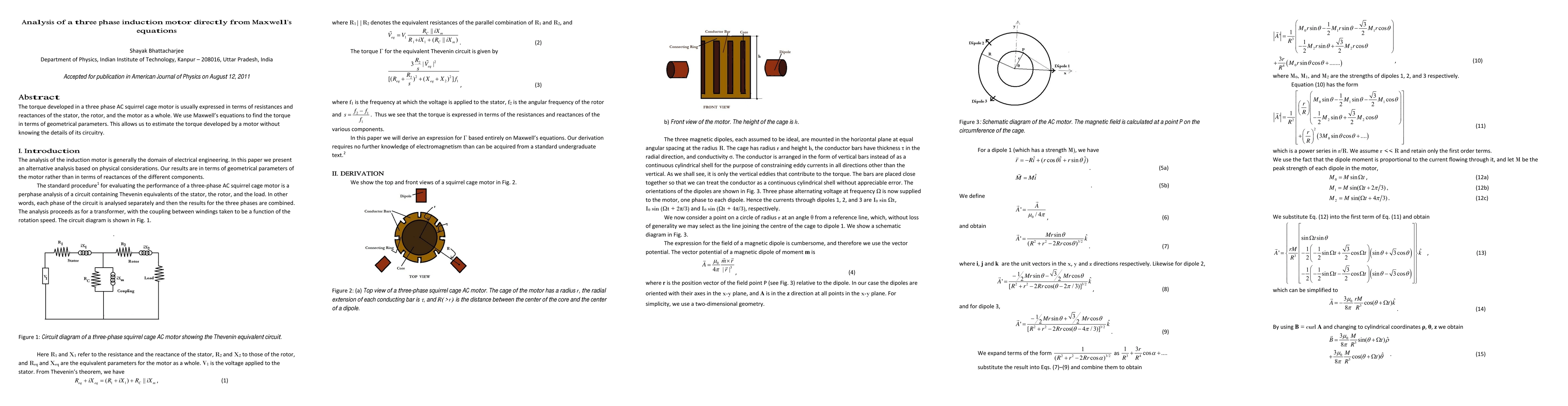 This paper derives the torque in a three-phase induction motor directly from Maxwell's equations, relating it to geometrical parameters rather than electrical circuit details. This approach enables torque estimation without knowledge of the motor's internal circuitry.