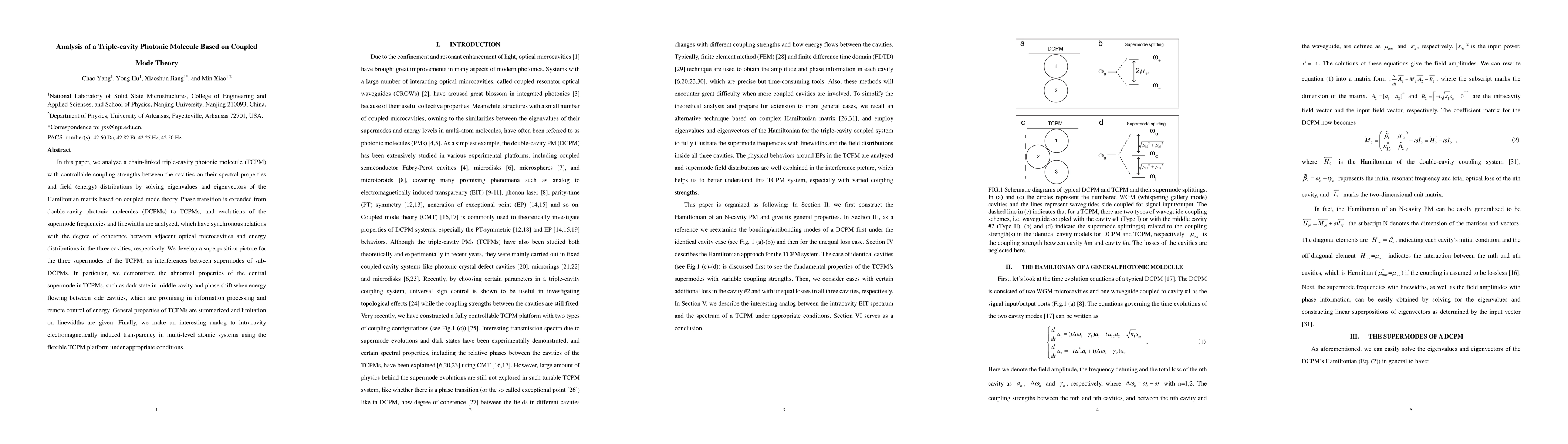 Researchers analyze a new type of photonic molecule with controllable coupling strengths, showing unique properties that can enable information processing and energy control, similar to electromagnetically induced transparency in atomic systems.