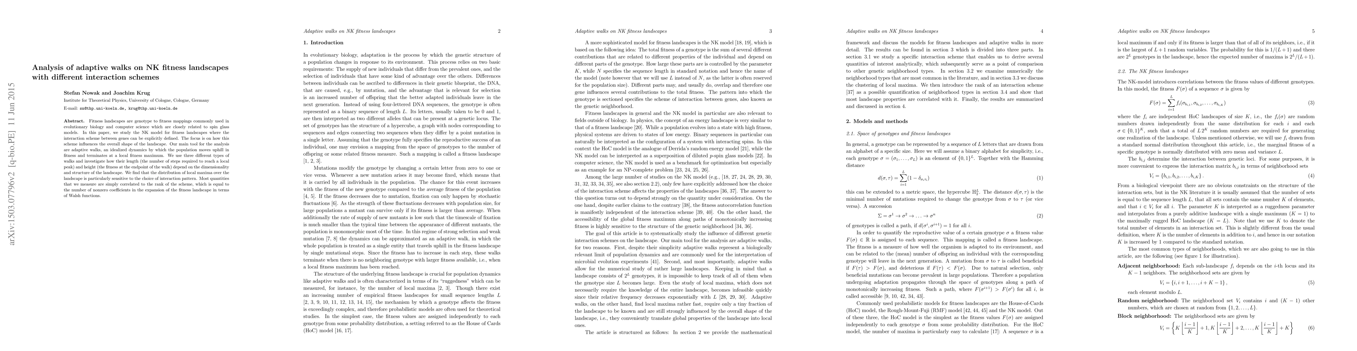 This paper analyzes adaptive walks on NK fitness landscapes to determine how different interaction schemes affect the landscape's shape. The study reveals that the distribution of local maxima is highly sensitive to the interaction pattern, with most measured quantities correlating to the rank of the scheme, which reflects the number of nonzero coefficients in the landscape's Walsh function expansion.