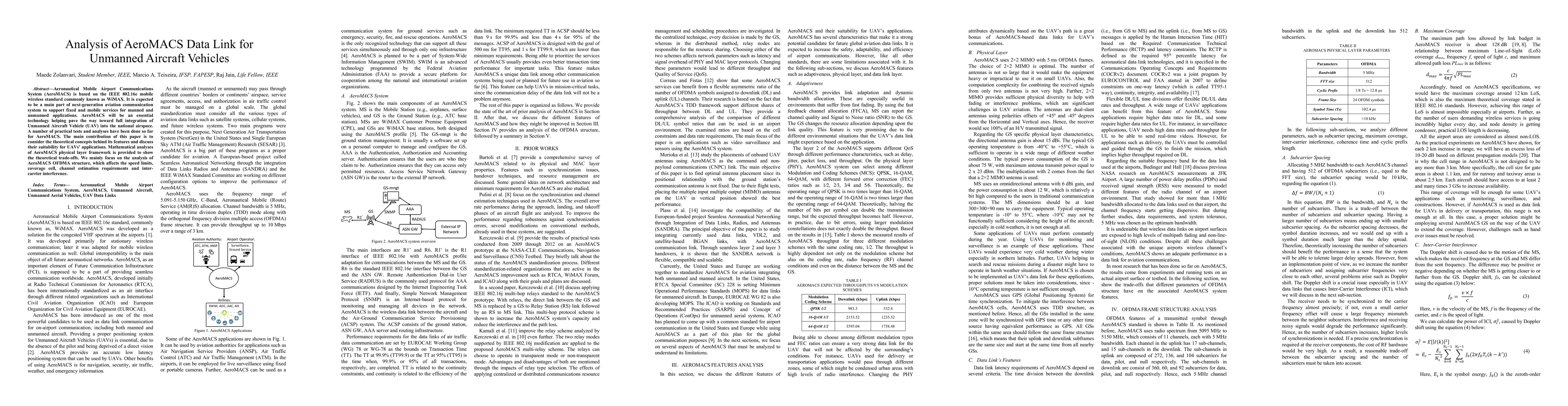 This paper analyzes the AeroMACS data link for UAVs, focusing on its IEEE 802.16e WiMAX foundation. It examines the suitability of AeroMACS features for UAV applications through mathematical analysis of its OFDMA structure, assessing factors like speed limits, coverage, and interference.