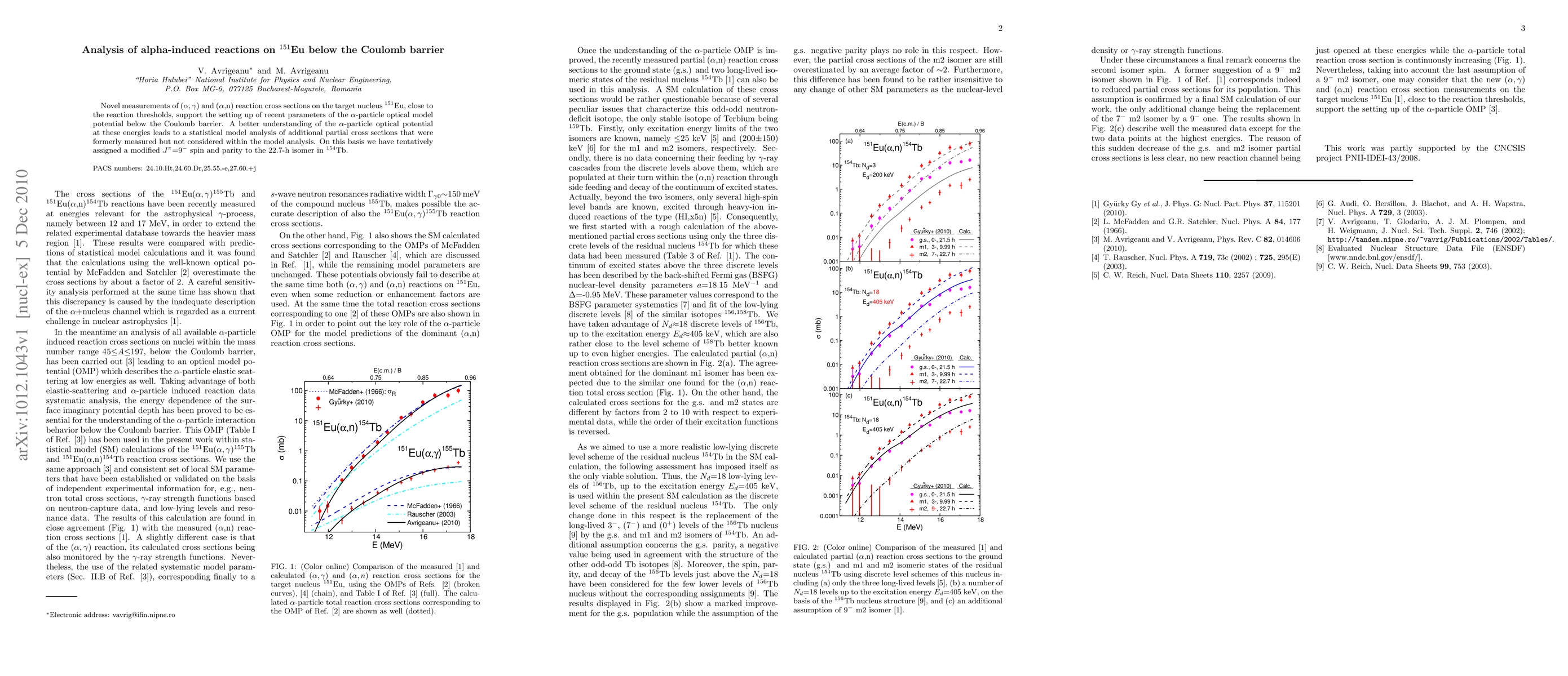 Researchers measured alpha-induced reactions on 151Eu, confirming the optical model potential below the Coulomb barrier and reassigning spin to a previously measured isomer in 154Tb.