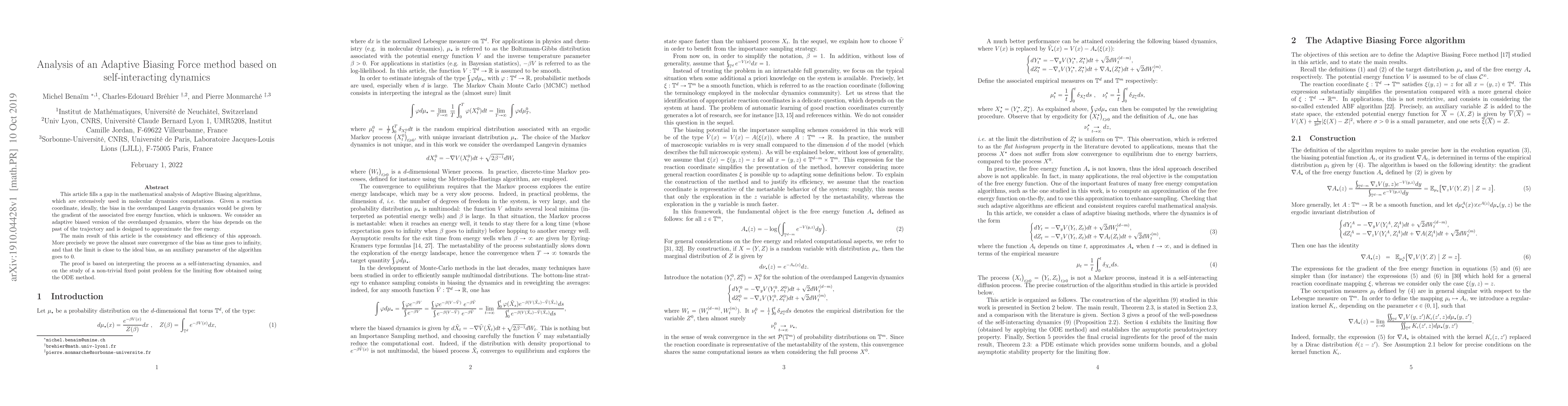 This article fills a gap in the mathematical analysis of Adaptive Biasing algorithms, which are extensively used in molecular dynamics computations. Given a reaction coordinate, ideally, the bias in the overdamped Langevin dynamics would be given by the gradient of the associated free energy function, which is unknown. We consider an adaptive biased version of the overdamped dynamics, where the bias depends on the past of the trajectory and is designed to approximate the free energy. The main result of this article is the consistency and efficiency of this approach. More precisely we prove the almost sure convergence of the bias as time goes to infinity, and that the limit is close to the ideal bias, as an auxiliary parameter of the algorithm goes to $0$. The proof is based on interpreting the process as a self-interacting dynamics, and on the study of a non-trivial fixed point problem for the limiting flow obtained using the ODE method.