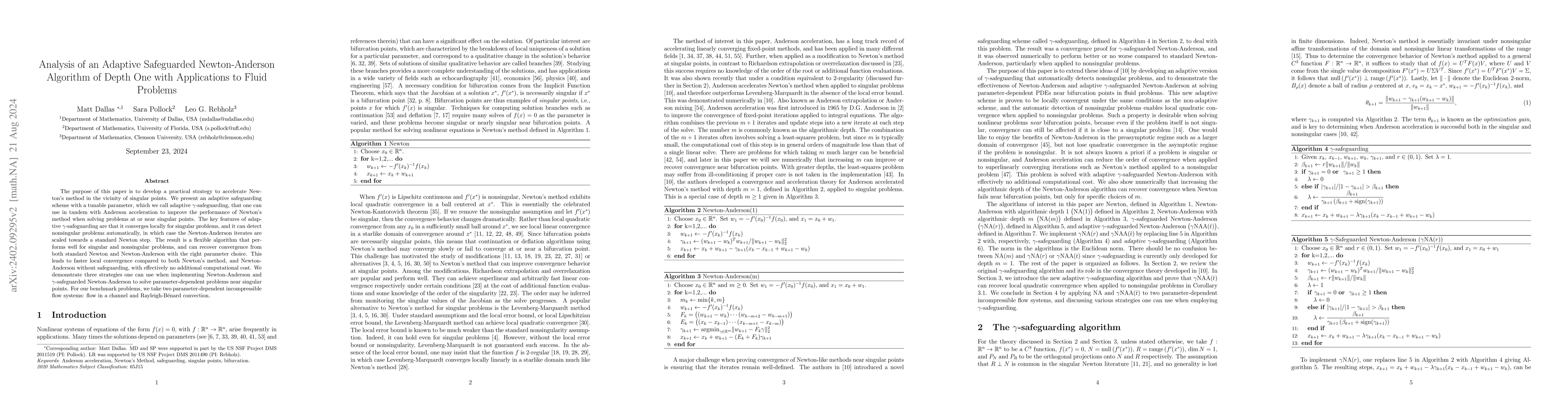 The purpose of this paper is to develop a practical strategy to accelerate Newton's method in the vicinity of singular points. We do this by developing an adaptive safeguarding scheme, which we call gamma-safeguarding, that one can apply to Anderson accelerated Newton's method when solving problems near singular points. The key features of adaptive gamma-safeguarding are that it converges locally for singular problems, and it can detect nonsingular problems, in which case the Newton-Anderson iterates are scaled towards a standard Newton step. This leads to faster local convergence compared to both Newton's method and Newton-Anderson without safeguarding, at no additional computational cost. We demonstrate three strategies one can use when implementing Newton-Anderson and gamma-safeguarded Newton-Anderson to solve parameter-dependent problems near singular points. For our benchmark problems, we take two parameter-dependent incompressible flow systems: flow in a channel and Rayleigh-Benard convection.
