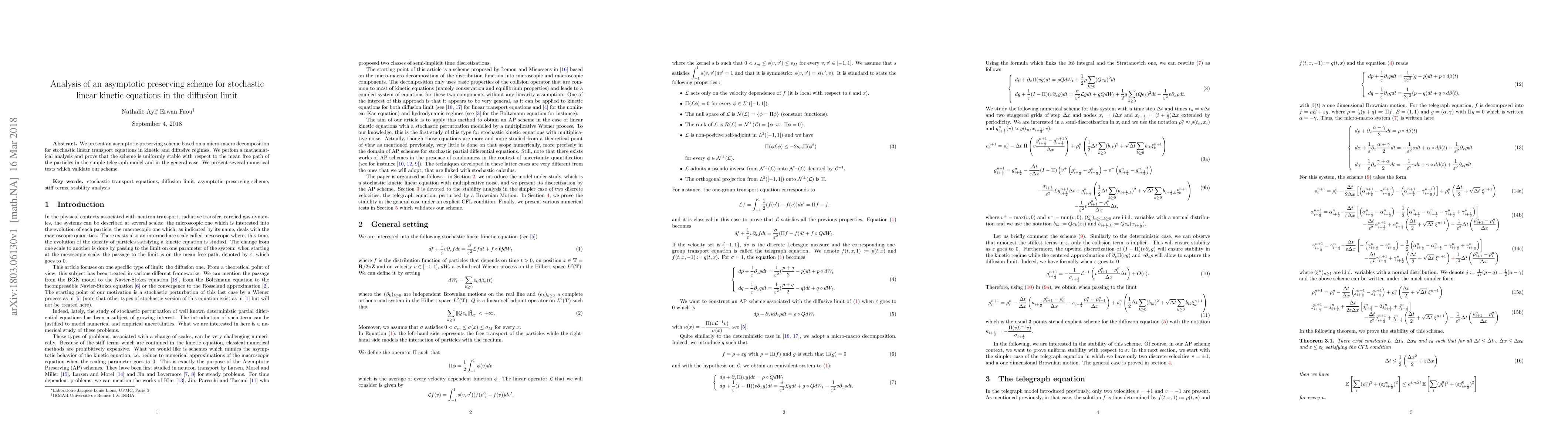 This paper proposes an asymptotic preserving scheme for stochastic linear kinetic equations, ensuring uniform stability across both kinetic and diffusive regimes. The scheme is validated through mathematical analysis and numerical tests.