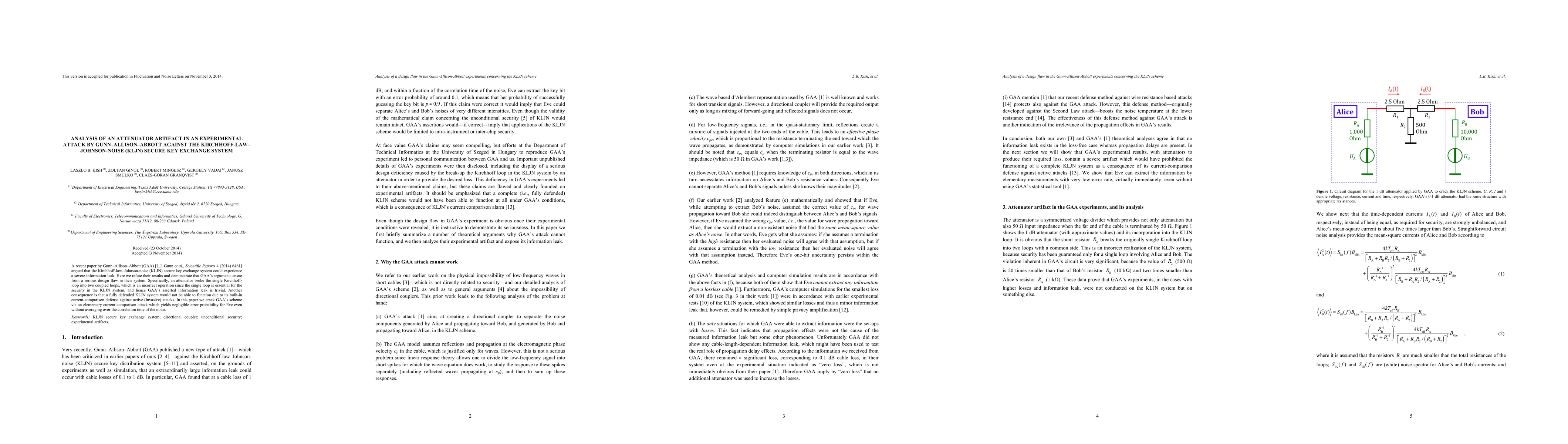 A recent paper by Gunn-Allison-Abbott (GAA) [L.J. Gunn et al., Scientific Reports 4 (2014) 6461] argued that the Kirchhoff-law-Johnson-noise (KLJN) secure key exchange system could experience a severe information leak. Here we refute their results and demonstrate that GAA's arguments ensue from a serious design flaw in their system. Specifically, an attenuator broke the single Kirchhoff-loop into two coupled loops, which is an incorrect operation since the single loop is essential for the security in the KLJN system, and hence GAA's asserted information leak is trivial. Another consequence is that a fully defended KLJN system would not be able to function due to its built-in current-comparison defense against active (invasive) attacks. In this paper we crack GAA's scheme via an elementary current comparison attack which yields negligible error probability for Eve even without averaging over the correlation time of the noise.