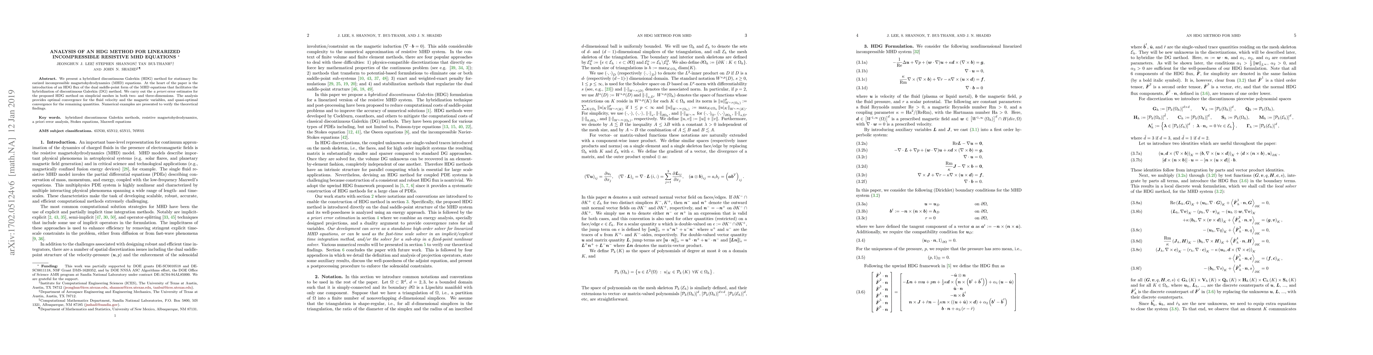 This paper introduces a hybridized discontinuous Galerkin (HDG) method for solving linearized incompressible resistive magnetohydrodynamics (MHD) equations, providing optimal convergence for fluid velocity and magnetic variables. Numerical examples validate the theoretical $\textit{a priori}$ error estimates.