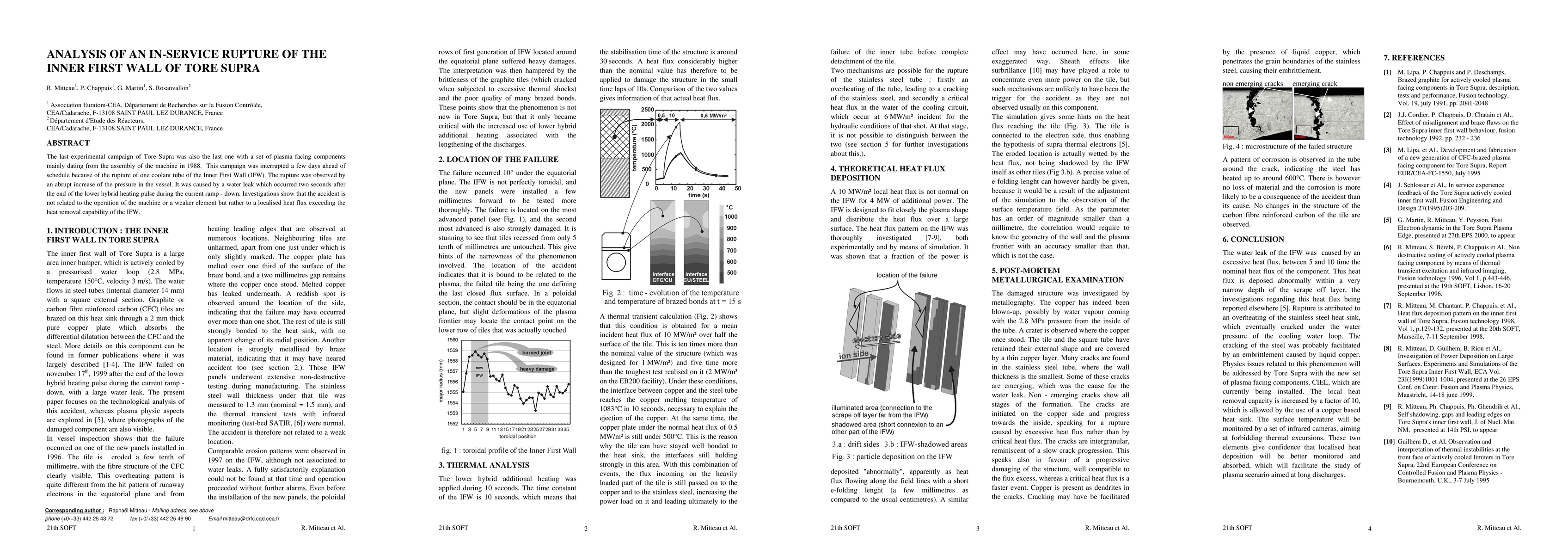The last experimental campaign of Tore Supra was also the last one with a set of plasma facing components mainly dating from the assembly of the machine in 1988. This campaign was interrupted a few days ahead of schedule because of the rupture of one coolant tube of the Inner First Wall (IFW). The rupture was observed by an abrupt increase of the pressure in the vessel. It was caused by a water leak which occurred two seconds after the end of the lower hybrid heating pulse during the current ramp-down. Investigations show that the accident is not related to the operation of the machine or a weaker element but rather to a localised heat flux exceeding the heat removal capability of the IFW.