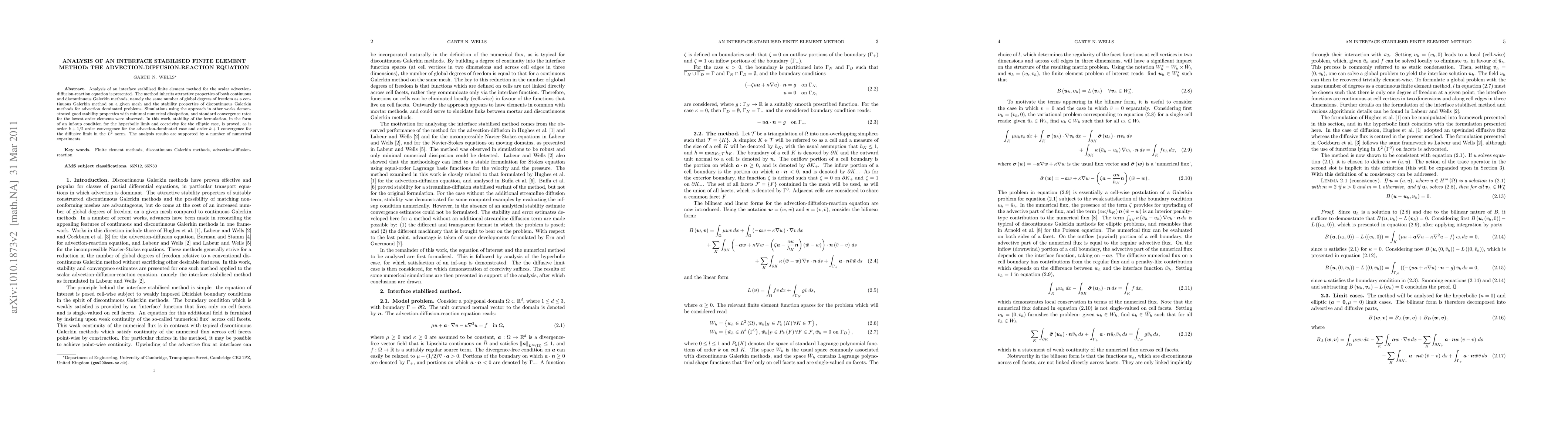 This paper analyzes an interface stabilised finite element method for the advection-diffusion-reaction equation, proving its stability and convergence properties. The method combines the advantages of continuous and discontinuous Galerkin methods, demonstrating good stability and minimal numerical dissipation in simulations.