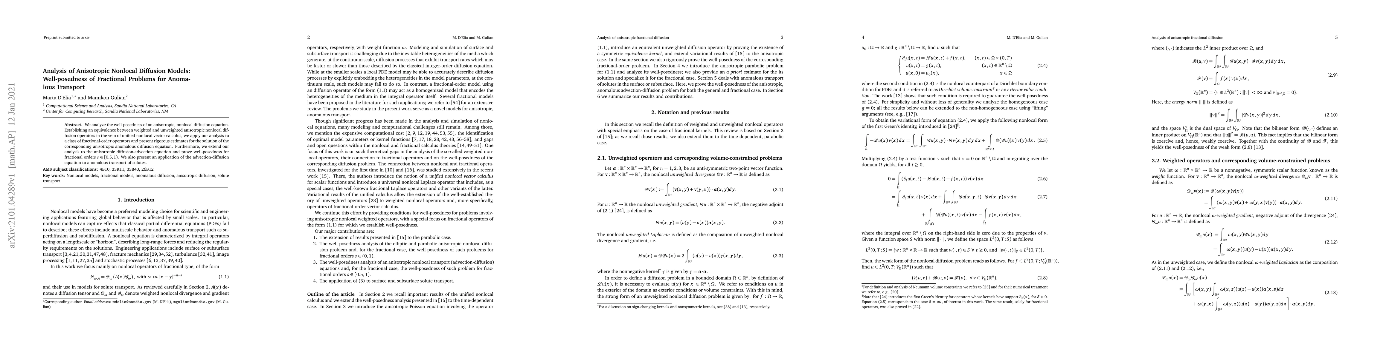 This paper investigates the well-posedness of anisotropic, nonlocal diffusion models, establishing equivalence between weighted and unweighted operators. It rigorously estimates solutions for fractional-order anomalous diffusion and extends analysis to the diffusion-advection equation, proving well-posedness for fractional orders in [0.5,1).