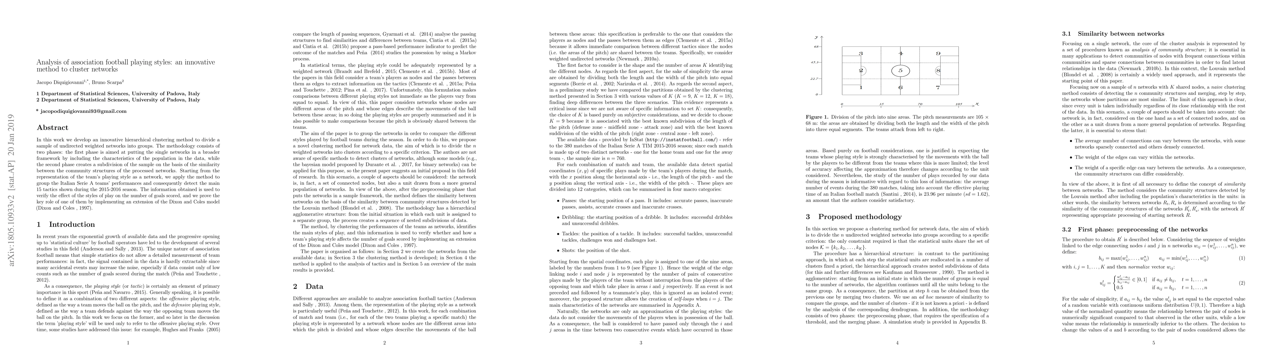 This paper introduces a novel hierarchical clustering method to categorize undirected weighted networks, applied to Italian Serie A football teams' playing styles. The method identifies the main 15 tactics used in the 2015-2016 season and analyzes their impact on goal scoring, highlighting the significance of one particular style using an extended Dixon and Coles model.