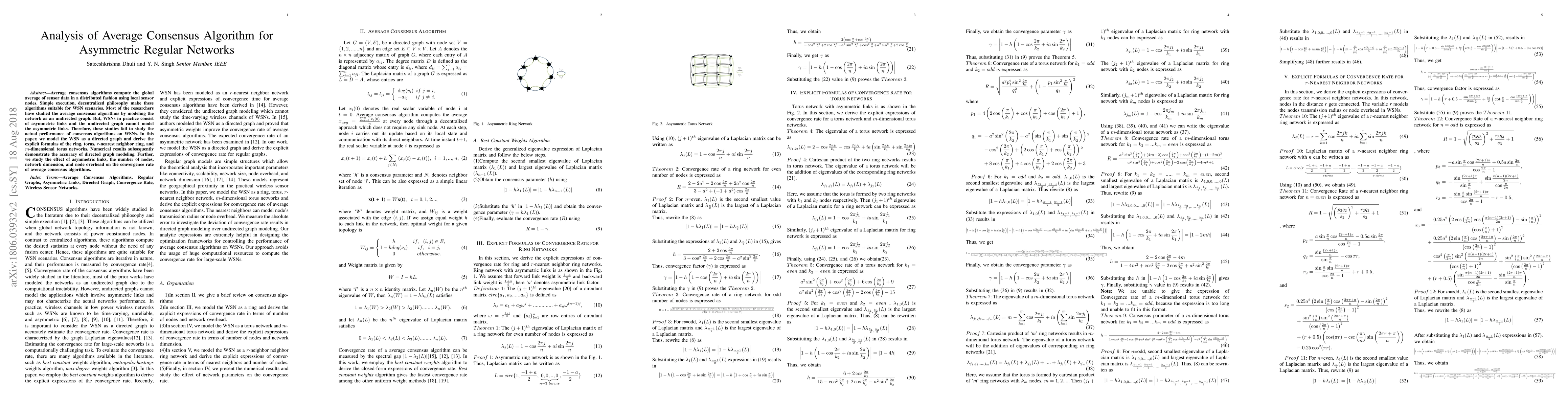 This paper analyzes the performance of average consensus algorithms on asymmetric regular networks by modeling WSNs as directed graphs, demonstrating improved accuracy and exploring factors affecting convergence rates.