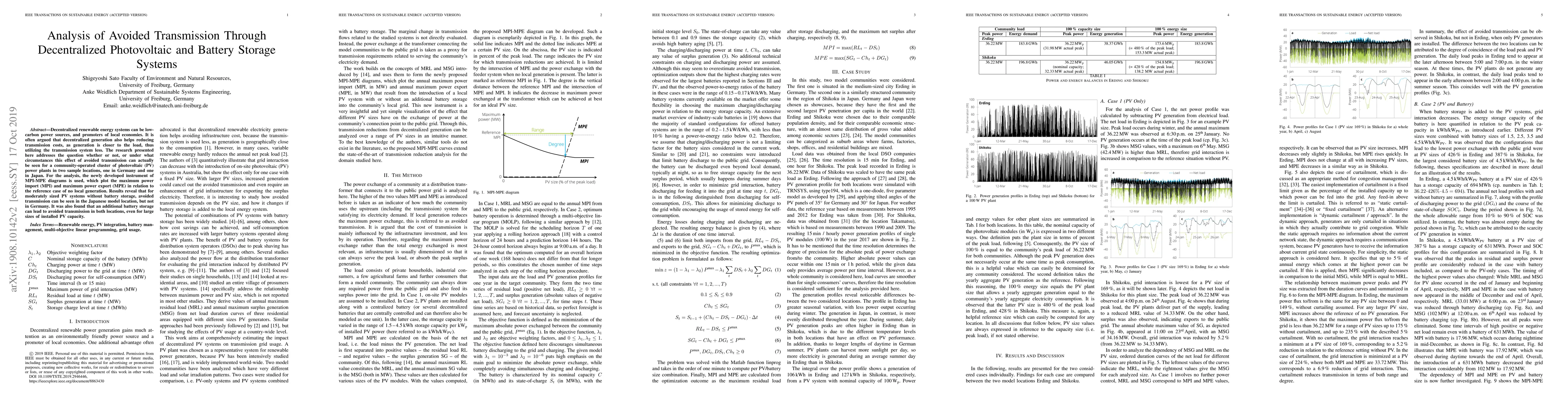 Decentralized renewable energy systems can be low-carbon power sources, and promoters of local economies. It is often argued that decentralized generation also helps reducing transmission costs, as generation is closer to the load, thus utilizing the transmission system less. The research presented here addresses the question whether or not, or under what circumstances this effect of avoided transmission can actually be seen for a community-operated cluster of photovoltaic (PV) power plants in two sample locations, one in Germany and one in Japan. For the analysis, the newly developed instrument of MPI-MPE diagrams is used, which plot the maximum power import (MPI) and maximum power export (MPE) in relation to the reference case of no local generation. Results reveal that for moderately sized PV systems without battery storage, avoided transmission can be seen in the Japanese model location, but not in Germany. It was also found that an additional battery storage can lead to avoided transmission in both locations, even for large sizes of installed PV capacity.