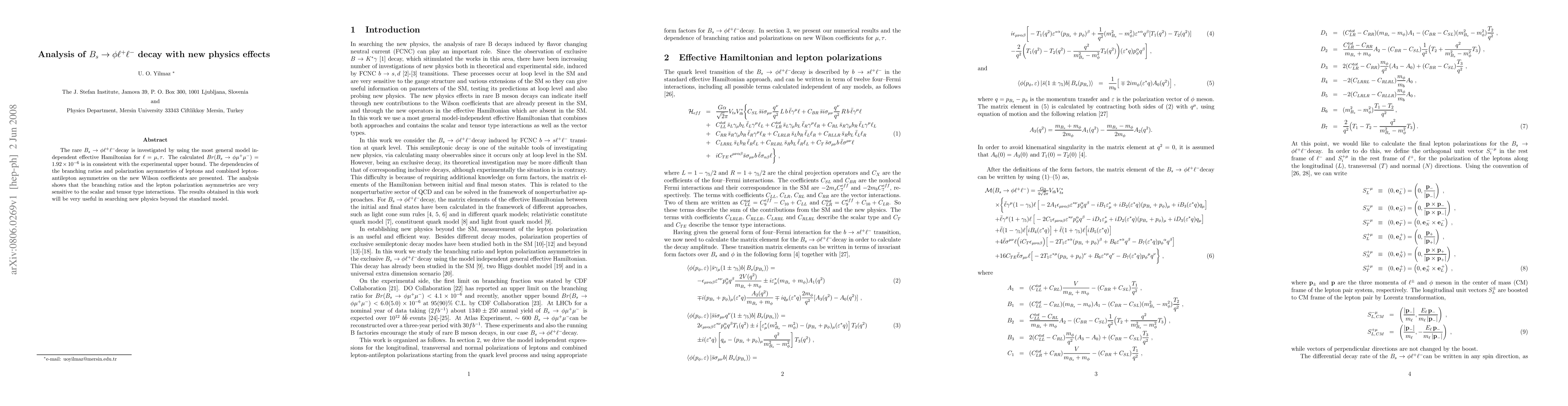 This paper analyzes the rare B_s-> \phi \ell^+ \ell^- decay using an effective Hamiltonian, finding that the branching ratio for B_s-> \phi \mu^+ \mu^- is consistent with experimental limits. It highlights the sensitivity of branching ratios and lepton polarization asymmetries to new physics effects, particularly scalar and tensor interactions.
