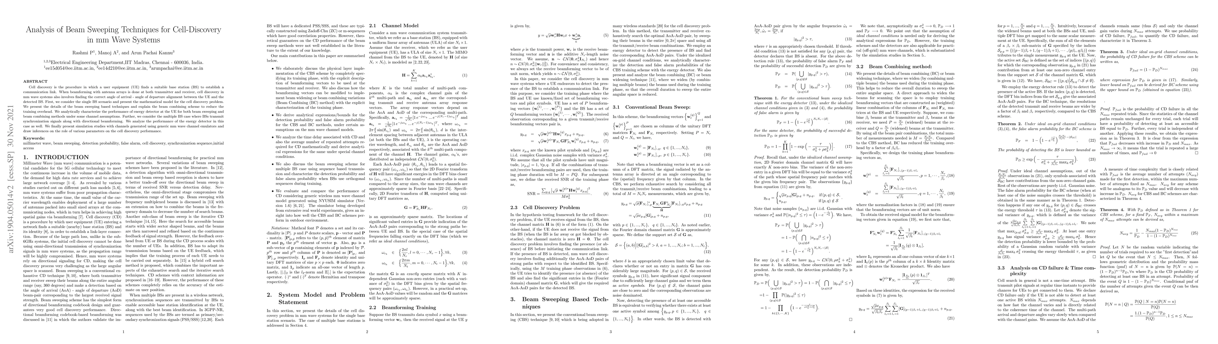 Researchers analyzed beam sweeping techniques for cell discovery in mm wave systems to improve communication link establishment. They found that energy detector performance improves with beam combining schemes.