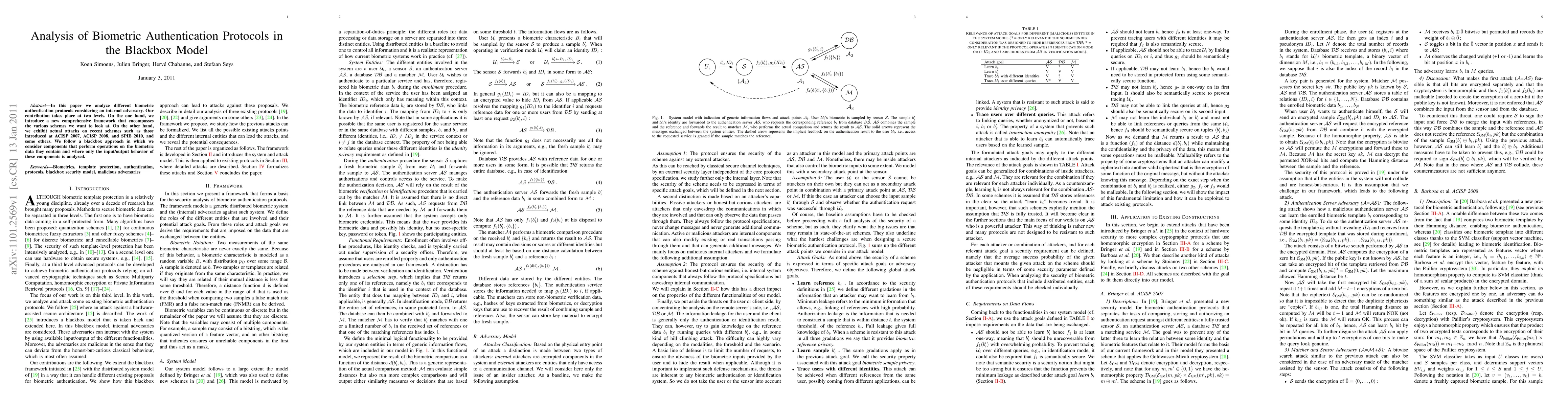 In this paper we analyze different biometric authentication protocols considering an internal adversary. Our contribution takes place at two levels. On the one hand, we introduce a new comprehensive framework that encompasses the various schemes we want to look at. On the other hand, we exhibit actual attacks on recent schemes such as those introduced at ACISP 2007, ACISP 2008, and SPIE 2010, and some others. We follow a blackbox approach in which we consider components that perform operations on the biometric data they contain and where only the input/output behavior of these components is analyzed.