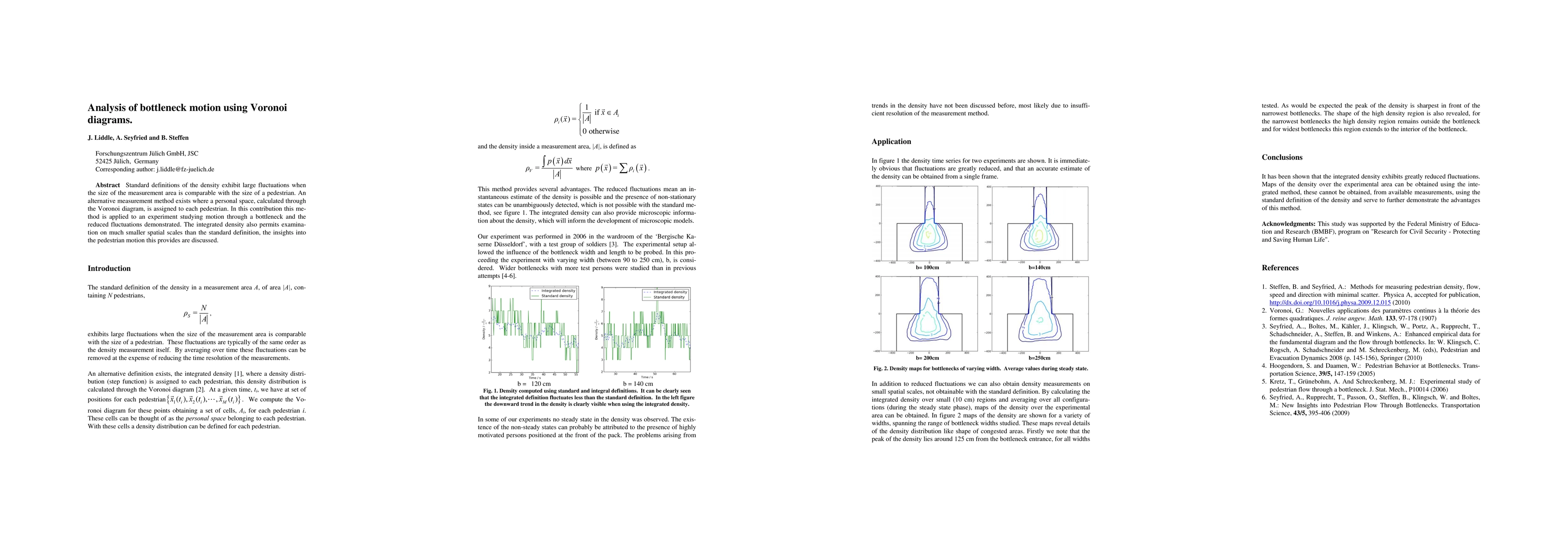 Researchers applied a new method using Voronoi diagrams to analyze pedestrian motion through a bottleneck, reducing fluctuations in density measurements. This approach provides insights into smaller spatial scales than traditional methods.