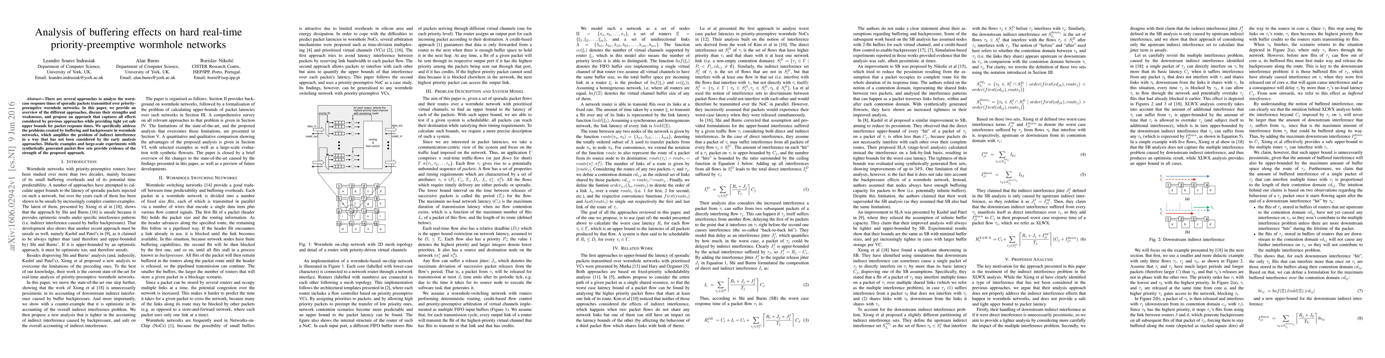 There are several approaches to analyse the worst-case response times of sporadic packets transmitted over priority-preemptive wormhole networks. In this paper, we provide an overview of the different approaches, discuss their strengths and weaknesses, and propose an approach that captures all effects considered by previous approaches while providing tight yet safe upper bounds for packet response times. We specifically address the problems created by buffering and backpressure in wormhole networks, which amplifies the problem of indirect interference in a way that has not been considered by the early analysis approaches. Didactic examples and large-scale experiments with synthetically generated packet flow sets provide evidence of the strength of the proposed approach.
