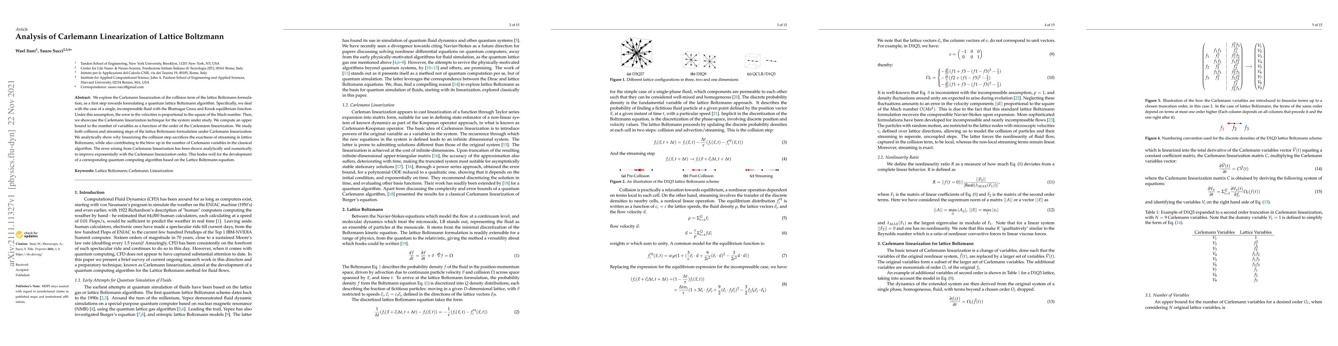 This paper investigates the Carlemann linearization of the lattice Boltzmann collision term for incompressible fluids, demonstrating its potential for quantum lattice Boltzmann algorithms. It shows that while linearization improves error reduction exponentially with order, it compromises the exactness of streaming and increases the number of variables.