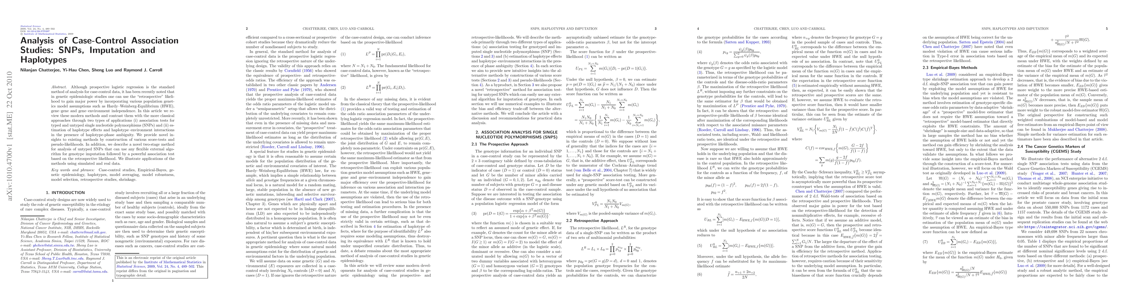 This study reviews modern methods for analyzing case-control data in genetic epidemiology, focusing on association tests and haplotype effects using retrospective likelihood and novel two-stage method.