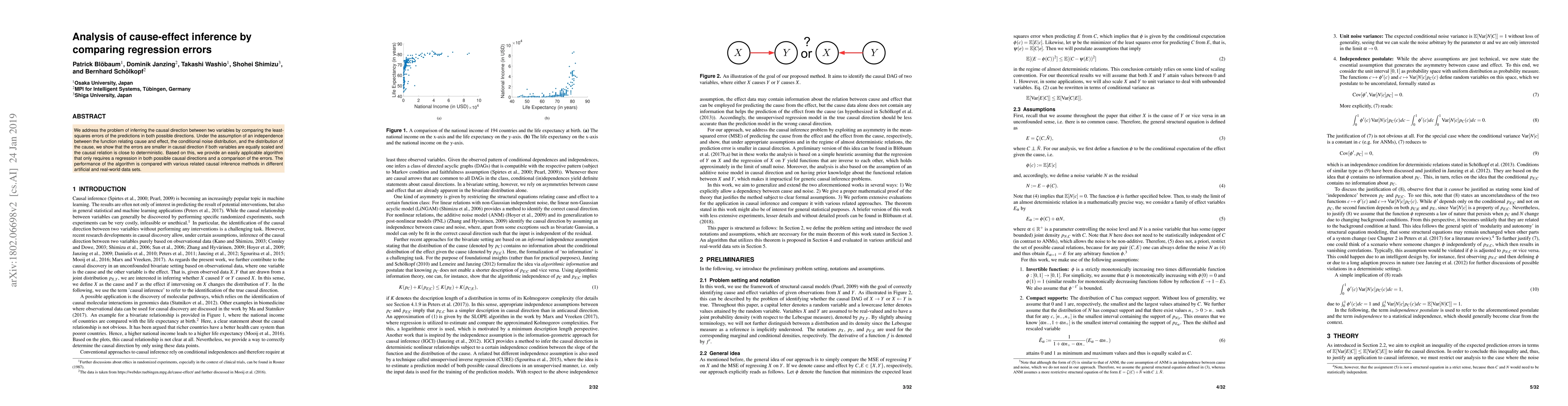 Researchers develop a simple algorithm to infer causal direction between variables by comparing regression errors in both directions, outperforming existing methods on artificial and real-world datasets.