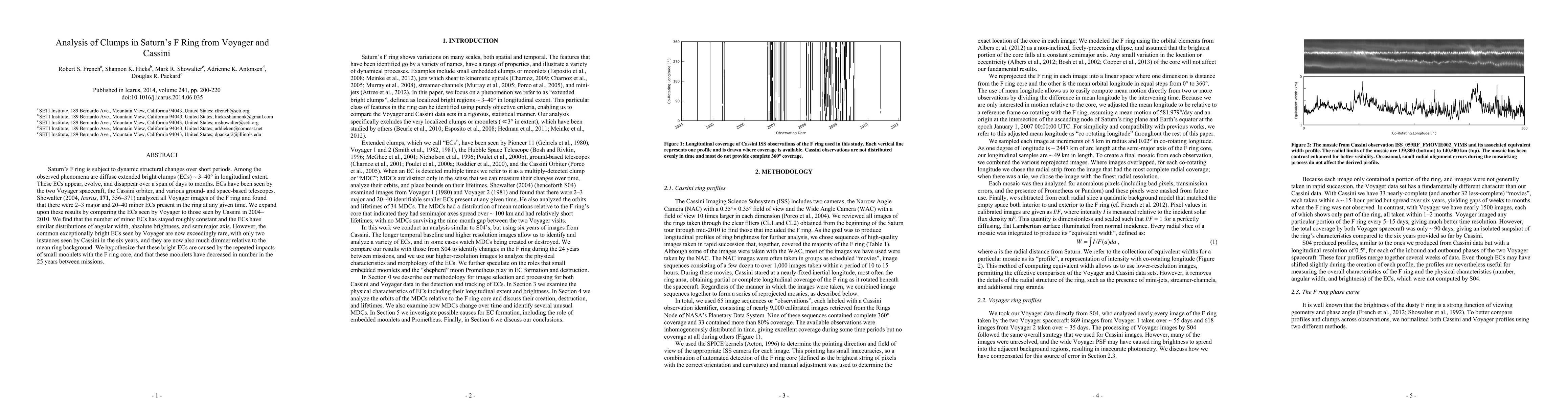 This paper compares the bright clumps (ECs) in Saturn's F ring observed by Voyager and Cassini, finding that while the number and distribution of minor ECs have remained stable, exceptionally bright ECs, hypothesized to result from moonlet impacts, have significantly decreased in both frequency and brightness over the 25 years between missions.