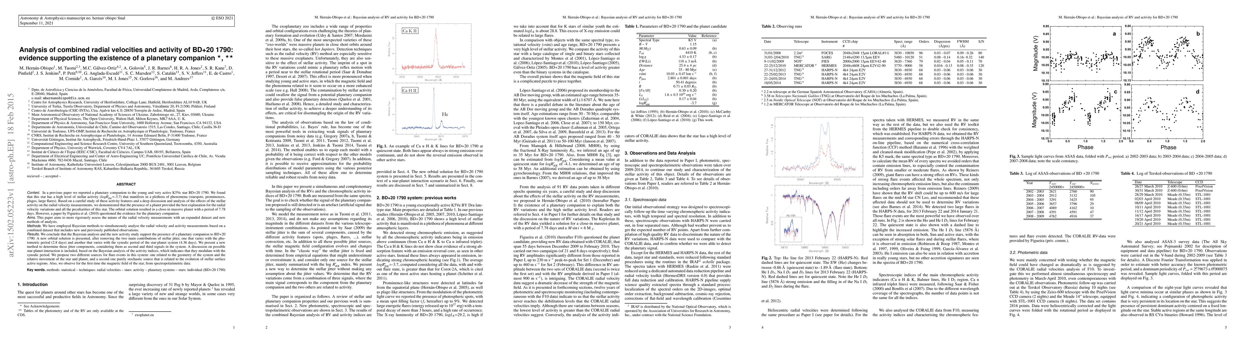 This paper presents the simultaneous Bayesian analysis of the radial velocity and activity indices for the K5Ve active star BD+20 1790, that was proposed to host a close-in massive planet by Hern\'an-Obispo et al. (2010). The Bayesian analysis supports the hypothesis of a planetary companion. We present a new orbital solution after removing the two main contributions to the stellar jitter, one that varies with the photometric period and another that varies with the synodic period of the star+planet system. We use a new method to determine these jitter components, considering them as a second and third signals in the system. A discussion on possible magnetic star-planet-interaction is included, based on the Bayesian analysis of the activity indices. We propose two possible sources for flare events of this star: one related to the geometry of the system and the relative movement of the star+planet, and a second one purely stochastic source that is related to the evolution of stellar active regions. Also, we observe for the first time the magnetic field of the star, from spectropolarimetric data.