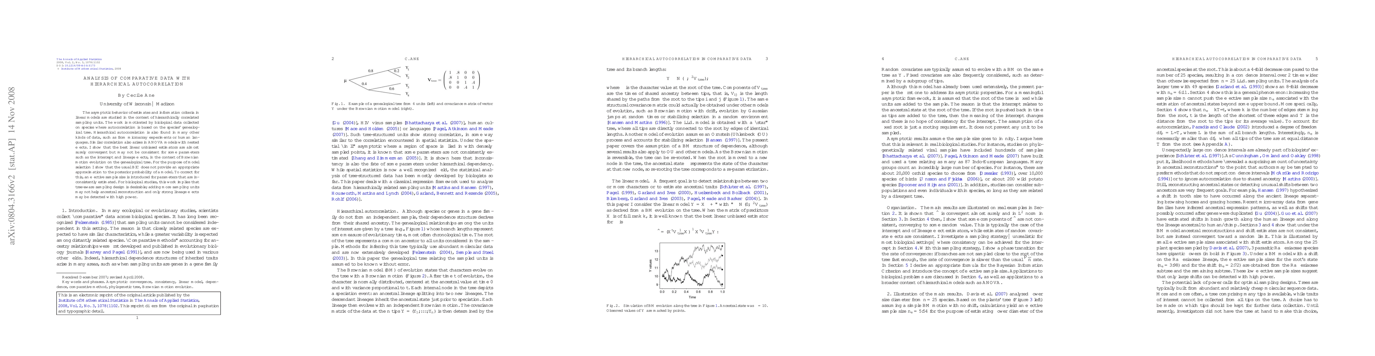 The asymptotic behavior of estimates and information criteria in linear models are studied in the context of hierarchically correlated sampling units. The work is motivated by biological data collected on species where autocorrelation is based on the species' genealogical tree. Hierarchical autocorrelation is also found in many other kinds of data, such as from microarray experiments or human languages. Similar correlation also arises in ANOVA models with nested effects. I show that the best linear unbiased estimators are almost surely convergent but may not be consistent for some parameters such as the intercept and lineage effects, in the context of Brownian motion evolution on the genealogical tree. For the purpose of model selection I show that the usual BIC does not provide an appropriate approximation to the posterior probability of a model. To correct for this, an effective sample size is introduced for parameters that are inconsistently estimated. For biological studies, this work implies that tree-aware sampling design is desirable; adding more sampling units may not help ancestral reconstruction and only strong lineage effects may be detected with high power.