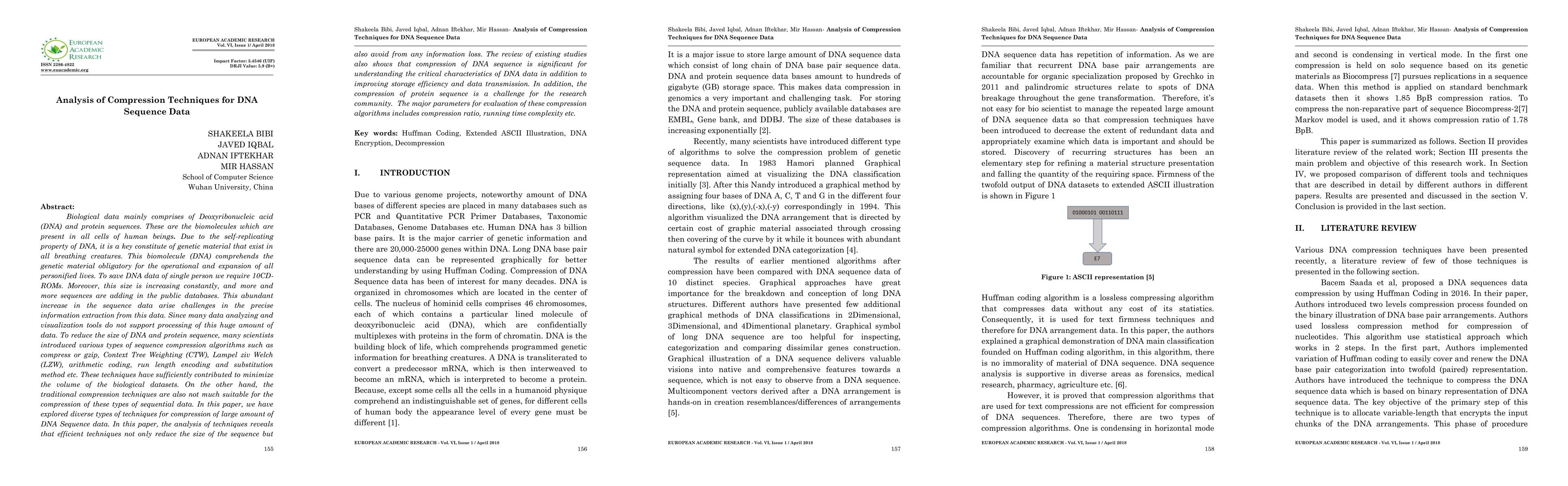 This paper analyzes various compression techniques for DNA sequence data, highlighting their effectiveness in reducing data size without information loss. It emphasizes the importance of these techniques for improving storage efficiency and data transmission, while noting the challenges in compressing protein sequences.