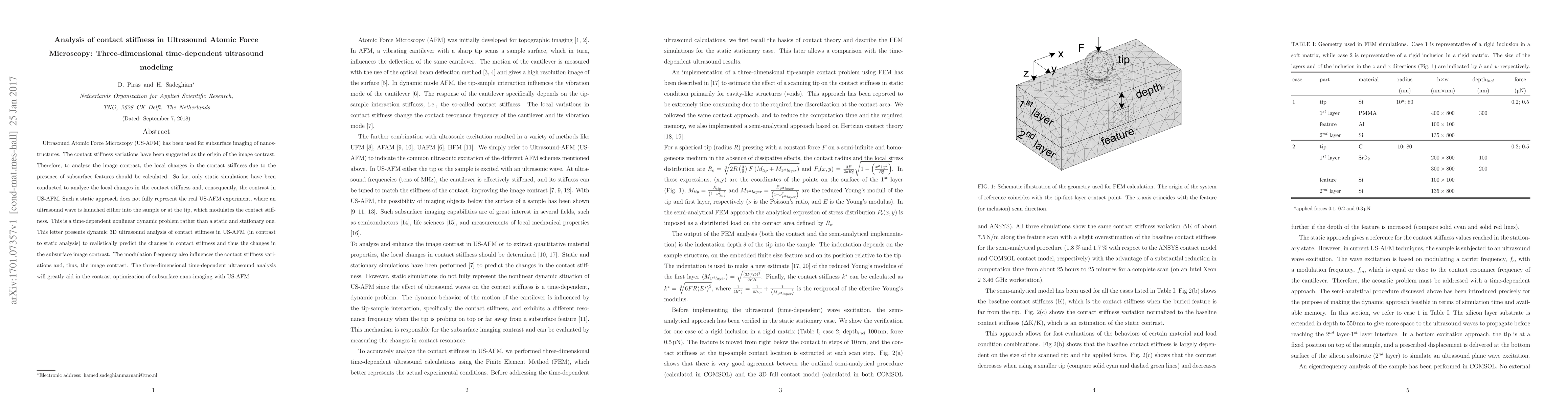 Ultrasound Atomic Force Microscopy (US-AFM) has been used for subsurface imaging of nanostructures. The contact stiffness variations have been suggested as the origin of the image contrast. Therefore, to analyze the image contrast, the local changes in the contact stiffness due to the presence of subsurface features should be calculated. So far, only static simulations have been conducted to analyze the local changes in the contact stiffness and, consequently, the contrast in US-AFM. Such a static approach does not fully represent the real US-AFM experiment, where an ultrasound wave is launched either into the sample or at the tip, which modulates the contact stiffness. This is a time-dependent nonlinear dynamic problem rather than a static and stationary one. This letter presents dynamic 3D ultrasound analysis of contact stiffness in US-AFM (in contrast to static analysis) to realistically predict the changes in contact stiffness and thus the changes in the subsurface image contrast. The modulation frequency also influences the contact stiffness variations and, thus, the image contrast. The three-dimensional time-dependent ultrasound analysis will greatly aid in the contrast optimization of subsurface nanoimaging with US-AFM.