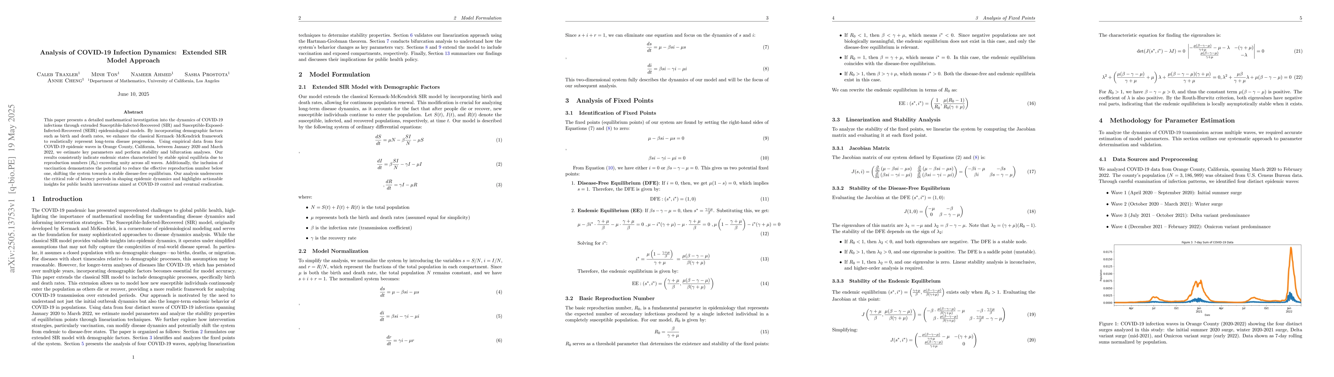 The research employs extended SIR and SEIR models, incorporating demographic factors like birth and death rates, to analyze COVID-19 infection dynamics over four epidemic waves in Orange County, California, from January 2020 to March 2022. Stability and bifurcation analyses are performed using empirical data.