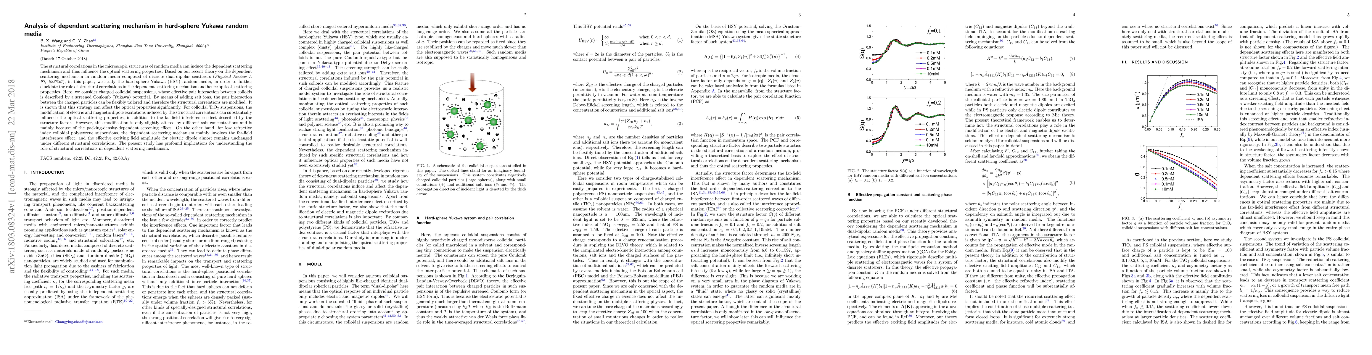 This paper investigates the dependent scattering mechanism in hard-sphere Yukawa random media, focusing on colloidal suspensions. The study reveals that structural correlations significantly influence optical scattering properties, with modifications in electric and magnetic dipole excitations affecting $\mathrm{TiO_2}$ suspensions, while polystyrene suspensions show mainly interference effects.