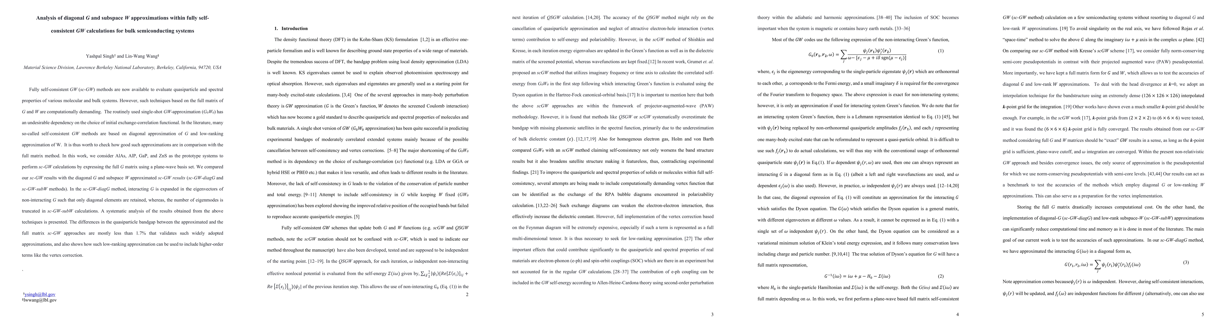 Fully self-consistent GW (sc-GW) methods are now available to evaluate quasiparticle and spectral properties of various molecular and bulk systems. However, such techniques based on the full matrix of G and W are computationally demanding. The routinely used single-shot GW-approximation (G0W0) has an undesirable dependency on the choice of initial exchange-correlation functional. In the literature, many so-called self-consistent GW methods are based on diagonal approximation of G and low-ranking approximation of W. It is thus worth to check how good such approximations are in comparison with the full matrix method. In this work, we consider AlAs, AlP, GaP, and ZnS as the prototype systems to perform sc-GW calculations by expressing the full G matrix using a plane-wave basis set. We compared our sc-GW results with the diagonal G and subspace W approximated sc-GW results (sc-GW-diagG and sc-GW-subW methods). In the sc-GW-diagG method, interacting G is expanded in the eigenvectors of non-interacting G such that only diagonal elements are retained, whereas, the number of eigenmodes is truncated in sc-GW-subW calculations. A systematic analysis of the results obtained from the above techniques is presented. The differences in the quasiparticle bandgap between the approximated and the full matrix sc-GW approaches are mostly less than 1.7% that validates such widely adopted approximations, and also shows how such low-ranking approximation can be used to include higher-order terms like the vertex correction.