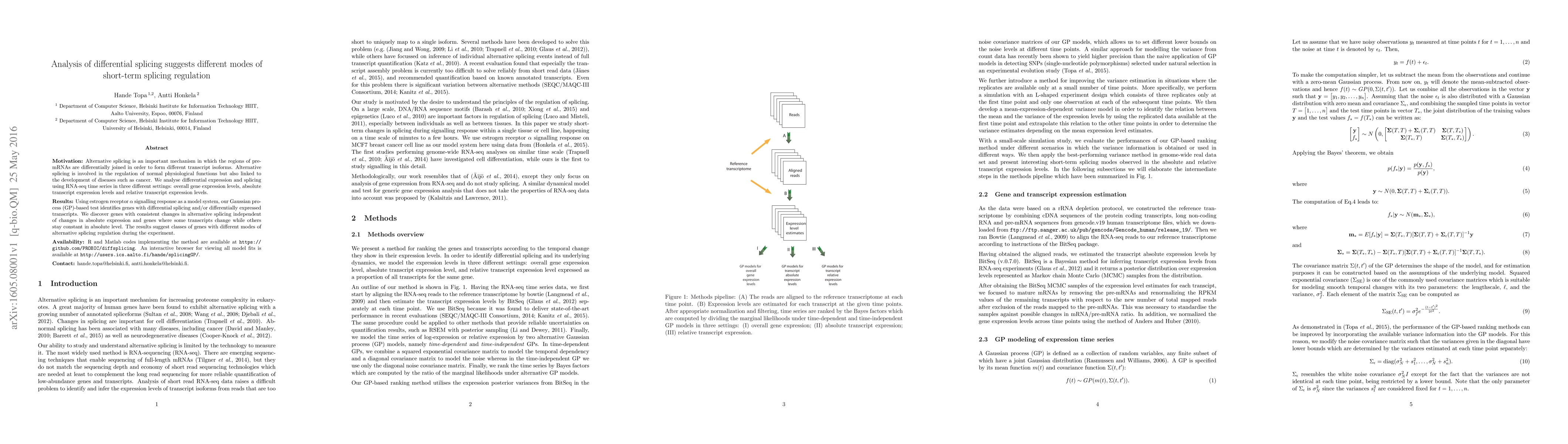 This paper analyzes differential splicing regulation using RNA-seq time series, identifying genes with consistent splicing changes independent of expression levels. The study suggests different modes of alternative splicing regulation during estrogen receptor $\alpha$ signaling response.