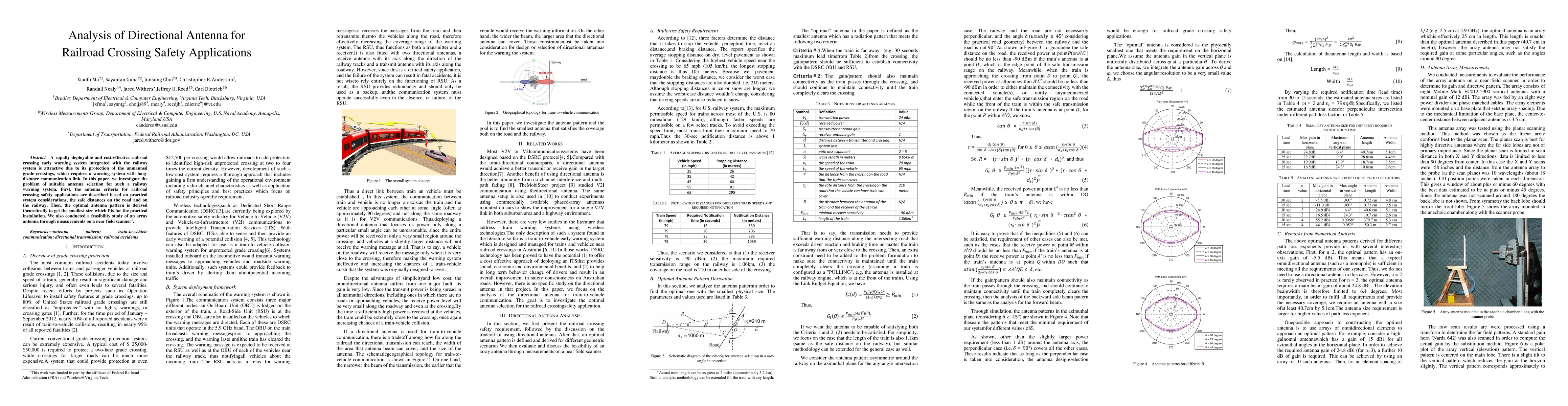 This paper analyzes the selection of directional antennas for a deployable, cost-effective railroad crossing early warning system, focusing on criteria based on safe distances and theoretical derivation of optimal antenna patterns. A feasibility study of an array antenna was conducted through near field scanner measurements.