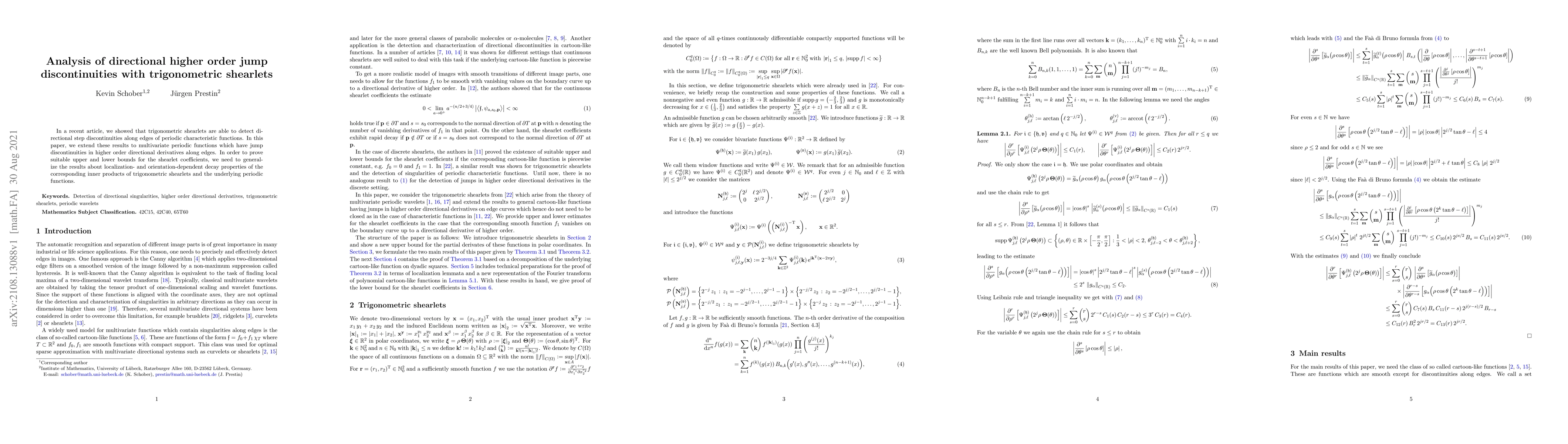 This paper extends the use of trigonometric shearlets to detect higher order directional jump discontinuities in multivariate periodic functions, generalizing previous results for step discontinuities and proving upper and lower bounds for shearlet coefficients through the analysis of localization- and orientation-dependent decay properties.