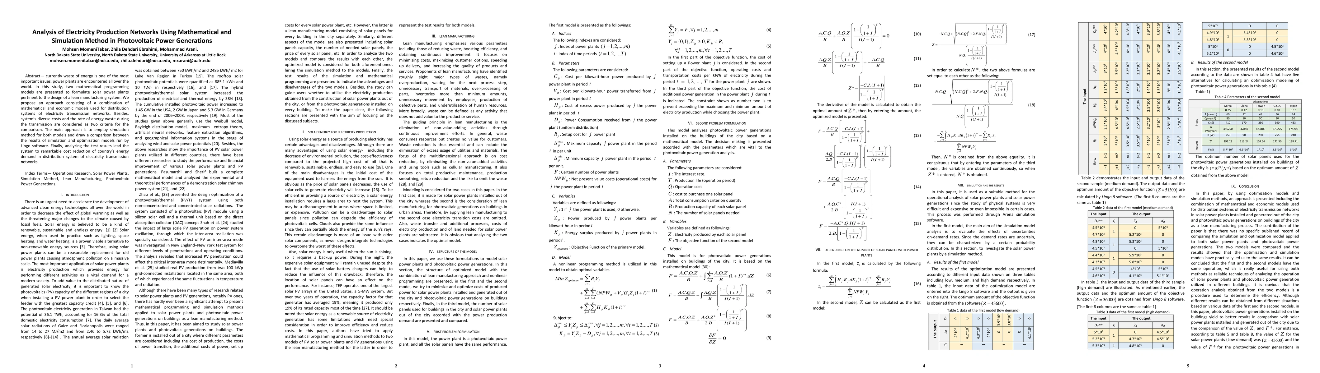 This study presents two mathematical programming models to optimize solar power plant design within lean manufacturing systems. It employs a combination of mathematical and economic models to evaluate electricity transmission networks, focusing on cost and energy waste reduction. Simulation results show significant cost savings in the country's energy demand distribution system.