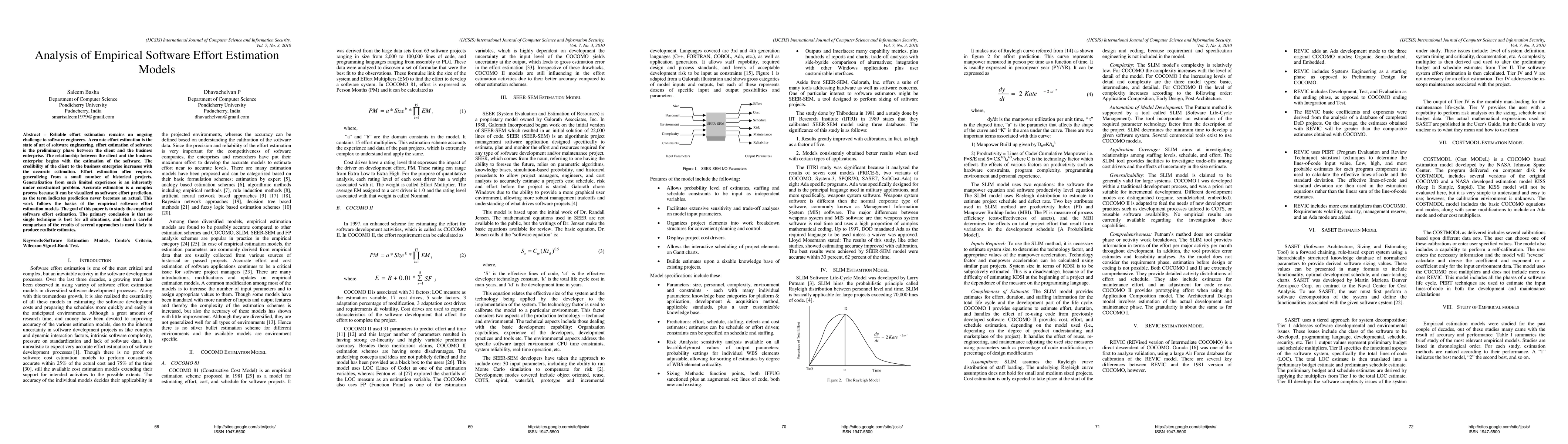 This paper analyzes various empirical software effort estimation models, concluding that no single technique is universally superior. Instead, a comparative approach that evaluates multiple methods often yields the most realistic estimates.