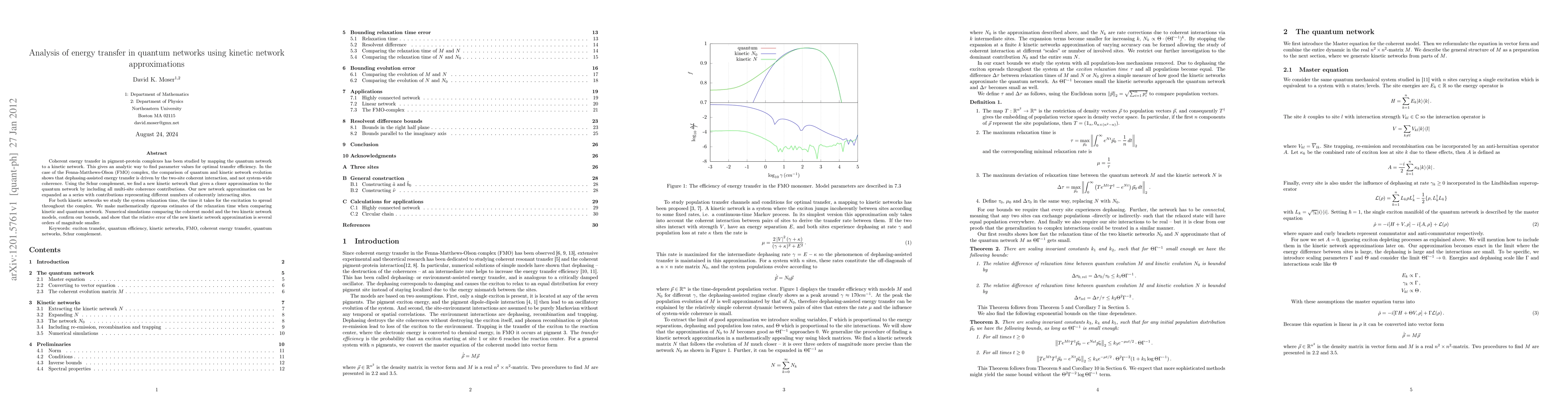 Coherent energy transfer in pigment-protein complexes has been studied by mapping the quantum network to a kinetic network. This gives an analytic way to find parameter values for optimal transfer efficiency. In the case of the Fenna-Matthews-Olson (FMO) complex, the comparison of quantum and kinetic network evolution shows that dephasing-assisted energy transfer is driven by the two-site coherent interaction, and not system-wide coherence. Using the Schur complement, we find a new kinetic network that gives a closer approximation to the quantum network by including all multi-site coherence contributions. Our new network approximation can be expanded as a series with contributions representing different numbers of coherently interacting sites. For both kinetic networks we study the system relaxation time, the time it takes for the excitation to spread throughout the complex. We make mathematically rigorous estimates of the relaxation time when comparing kinetic and quantum network. Numerical simulations comparing the coherent model and the two kinetic network models, confirm our bounds, and show that the relative error of the new kinetic network approximation is several orders of magnitude smaller. Keywords: exciton transfer, quantum efficiency, kinetic networks, FMO, coherent energy transfer, quantum networks, Schur complement.