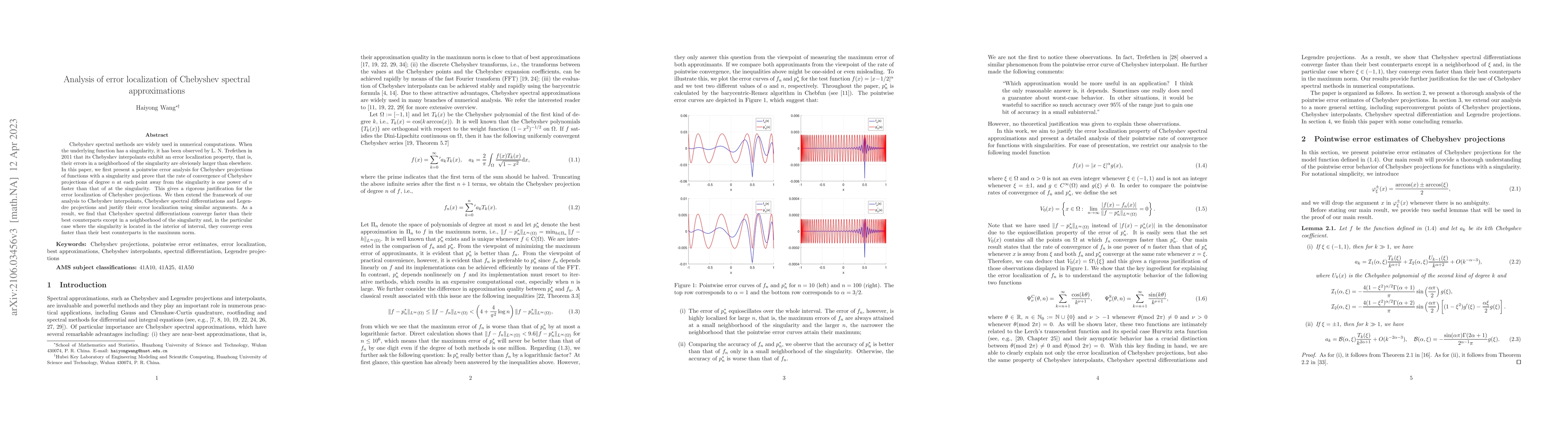 This paper rigorously analyzes the error localization property of Chebyshev spectral approximations near singularities, proving that errors are significantly larger in the vicinity of singularities compared to other regions. It extends this analysis to Chebyshev interpolants, spectral differentiations, and Legendre projections, confirming their faster convergence away from singularities.