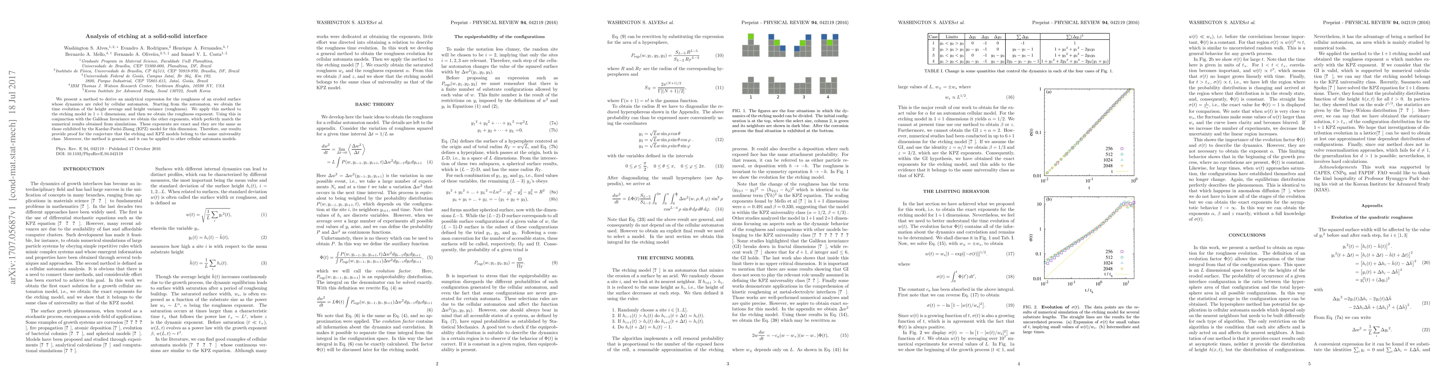 We present a method to derive an analytical expression for the roughness of an eroded surface whose dynamics are ruled by cellular automaton. Starting from the automaton, we obtain the time evolution of the height average and height variance (roughness). We apply this method to the etching model in 1 + 1 dimensions, and then we obtain the roughness exponent. Using this in conjunction with the Galilean invariance we obtain the other exponents, which perfectly match the numerical results obtained from simulations. These exponents are exact, and they are the same as those exhibited by the Kardar-Parisi-Zhang (KPZ) model for this dimension. Therefore, our results provide proof for the conjecture that the etching and KPZ models belong to the same universality class. Moreover, the method is general, and it can be applied to other cellular automata models.
