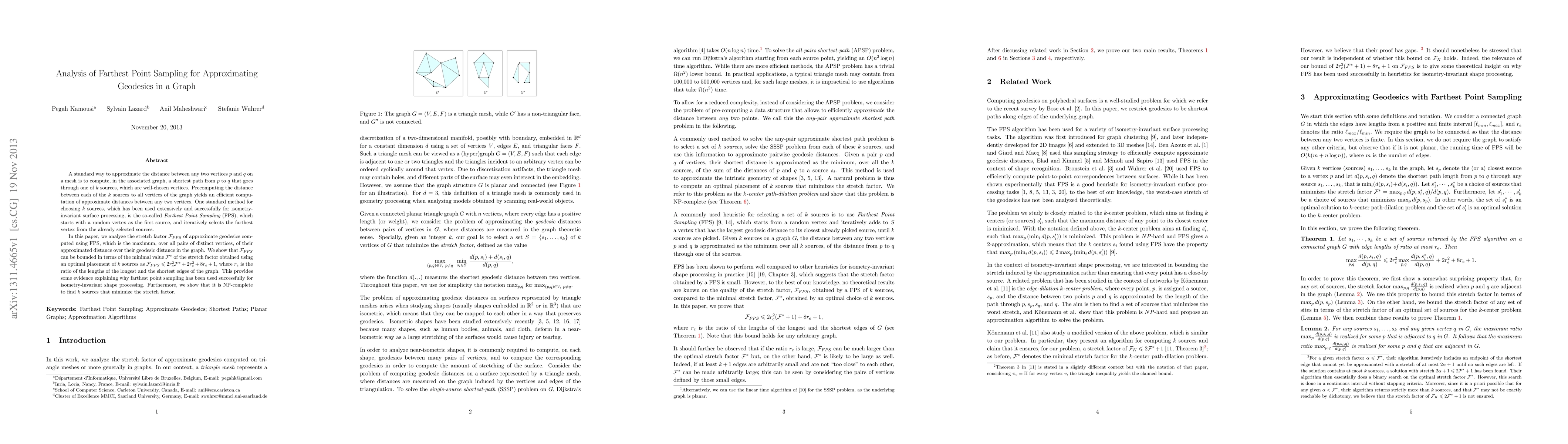 Researchers analyzed Farthest Point Sampling (FPS) for approximating geodesics on a graph, finding that its stretch factor can be bounded by a constant times the optimal placement of sources, providing evidence for its success in shape processing. They also showed that finding the minimum stretch factor is NP-complete.