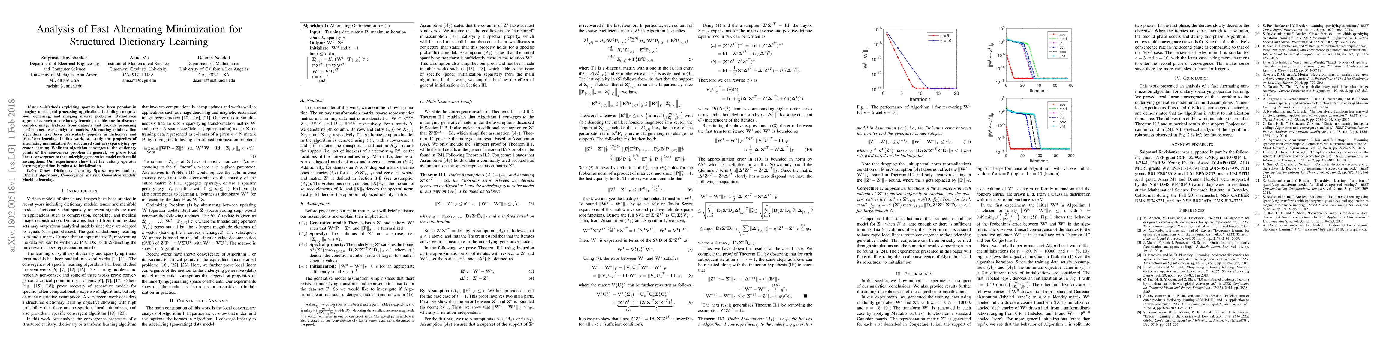 This paper investigates the fast alternating minimization method for learning structured (unitary) sparsifying operators in dictionary learning. It demonstrates rapid local linear convergence under mild assumptions and shows the algorithm's robustness to initialization through experiments.