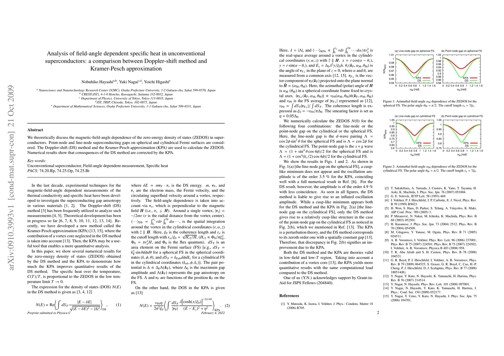 This paper compares the Doppler-shift method and Kramer-Pesch approximation for analyzing the magnetic-field-angle dependence of the zero-energy density of states in unconventional superconductors, finding that the Kramer-Pesch approximation corrects the consequences of the Doppler-shift method.