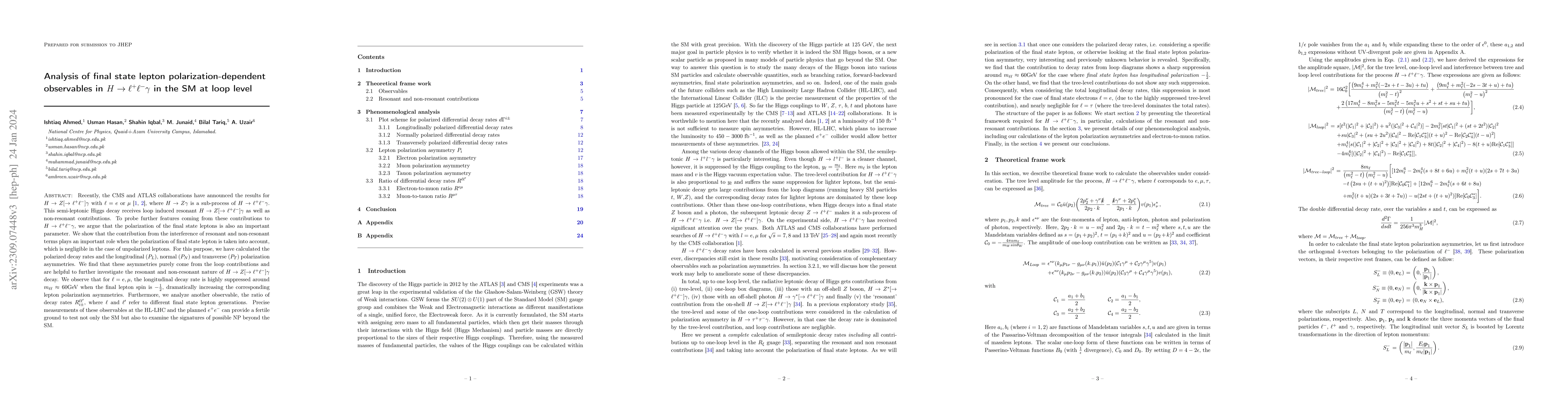 This research examines final state lepton polarization-dependent observables in the semi-leptonic Higgs decay $H\rightarrow \ell^{+}\ell^{-} \gamma$, focusing on loop-level contributions. It finds that polarization asymmetries, especially longitudinal ones, are significantly affected by the interference of resonant and non-resonant terms, providing a method to probe Standard Model features and potential new physics beyond the SM.