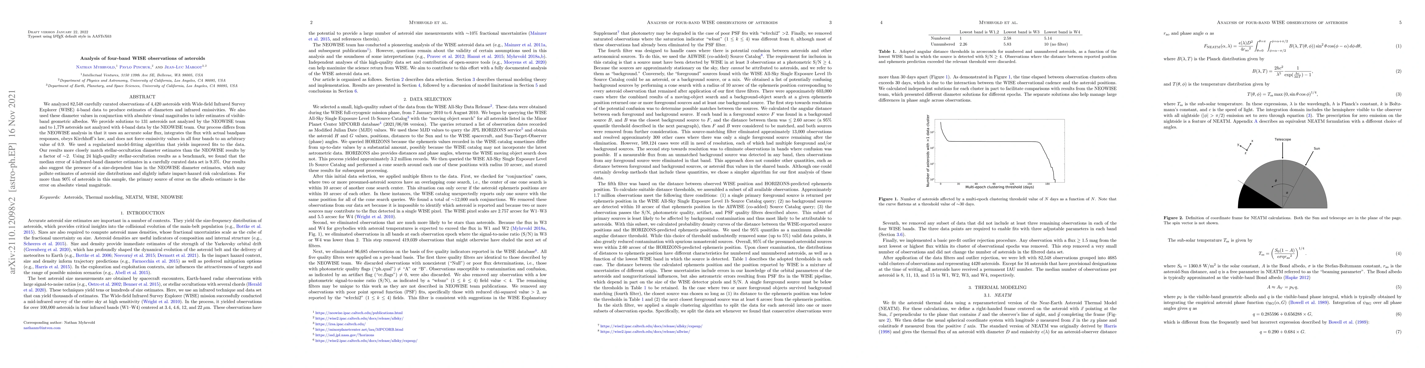 This paper analyzes WISE four-band data for 4420 asteroids, providing diameter and albedo estimates that differ from NEOWISE results by using accurate solar flux and a regularized model fitting algorithm. The study finds a median diameter estimate error of 9.3% and suggests a size-dependent bias in NEOWISE estimates.