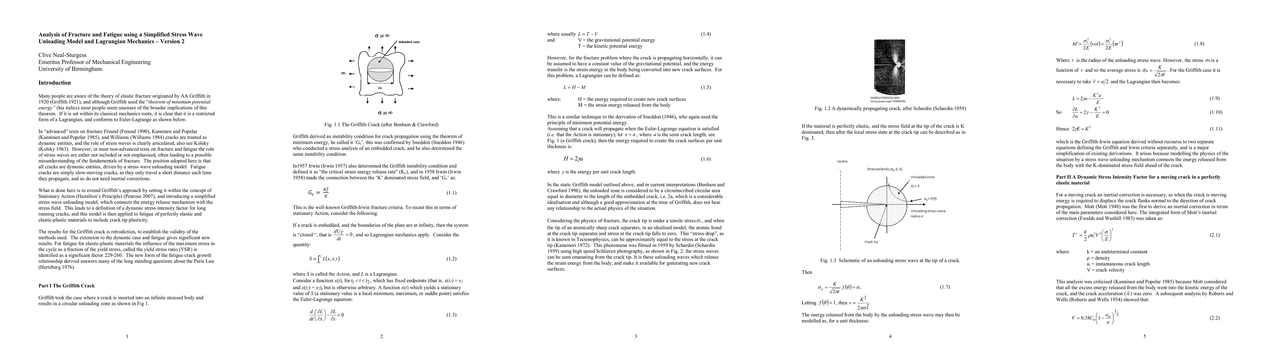 Many people are aware of the theory of elastic fracture originated by AA Griffith, and although Griffith used the theorem of minimum potential energy most people seem unaware of the broader implications of this theorem. If it is set within its classical mechanics roots, it is clear that it is a restricted form of a Lagrangian. In advanced texts on fracture cracks are treated as dynamic entities, and the role of stress waves is clearly articulated. However, in most non-advanced texts on fracture and fatigue the role of stress waves are either not included or not emphasised, often leading to a possible misunderstanding of the fundamentals of fracture. What is done here is to extend Griffiths approach by setting it within the concept of Stationary Action, and introducing a quasi-static stress wave unloading model, which connects the energy release mechanism with the stress field. This leads to a definition of a dynamic stress intensity factor, and this model is then applied to fatigue of perfectly elastic and elastic-plastic materials to include crack tip plasticity. The results for the Griffiths crack and the dynamic case are retrodiction, to establish the validity of the methods used. The extension to fatigue gives significant new results, which show that for elastic-plastic materials the influence of the maximum stress in the cycle as a fraction of the yield stress, called the yield stress ratio, has not been recognised. The new form of the fatigue crack growth relationship derived answers many of the long standing questions about the Paris Law.