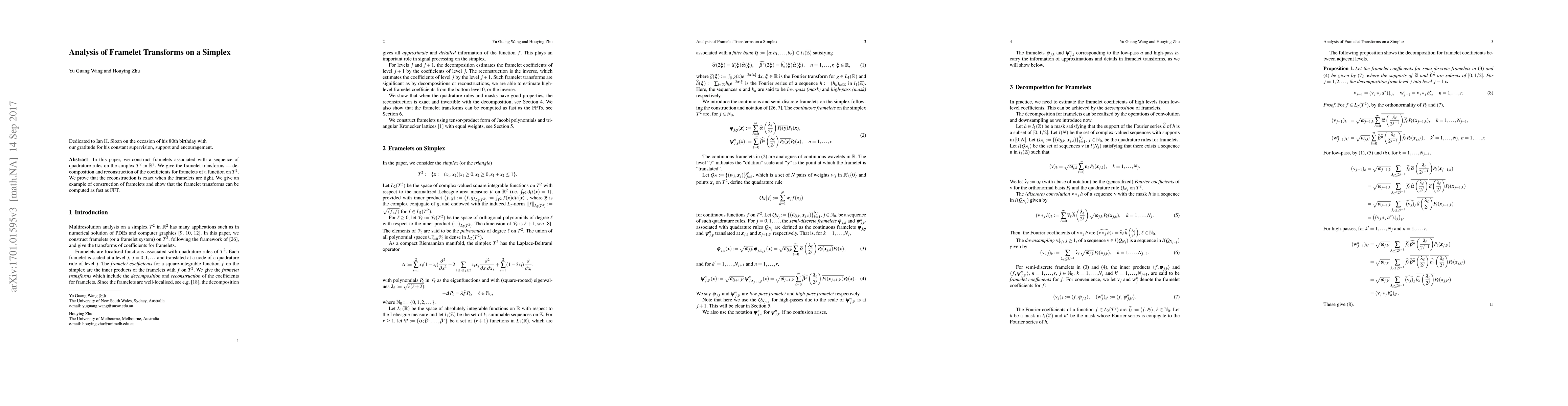 Researchers develop framelet transforms for a simple quadratic region in 2D space, showing that these transforms can efficiently reconstruct functions with exact results when using tight frames.