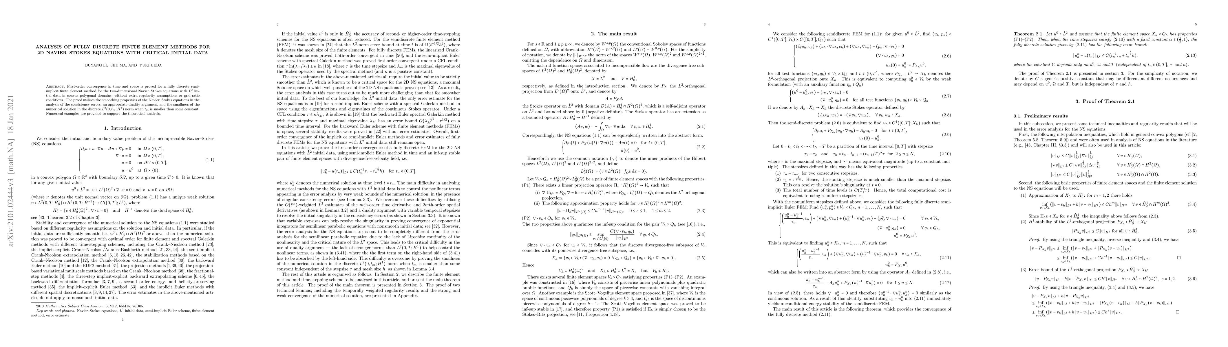 This paper proves first-order convergence for a fully discrete semi-implicit finite element method applied to 2D Navier-Stokes equations with critical initial data, using a combination of smoothing properties and numerical solution smallness. Numerical examples validate the theoretical findings.